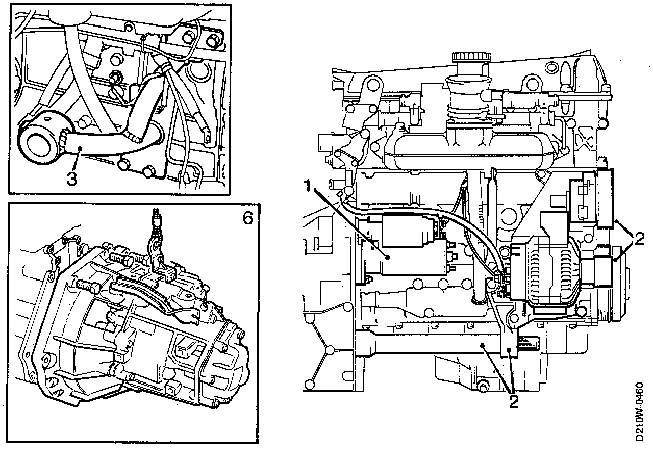 1. Drain the oil and remove the starter motor.