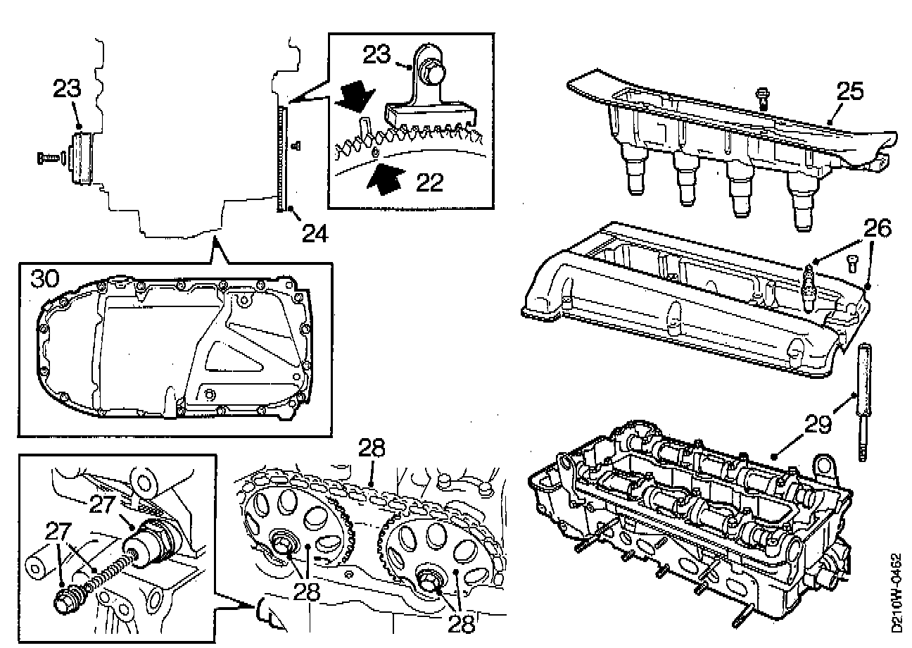 26. Remove the spark plugs and camshaft cover.