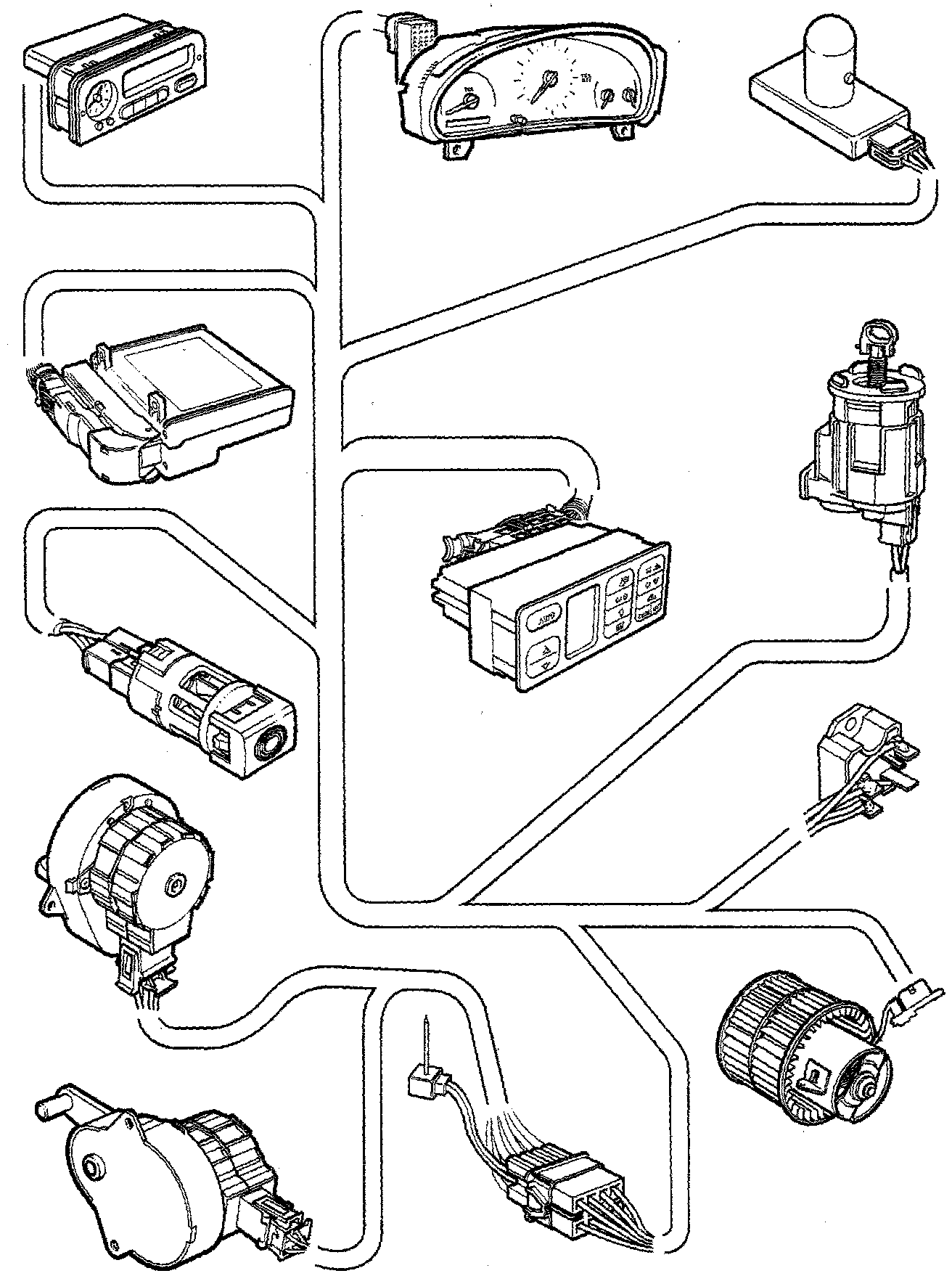 The ACC control module consists of a display panel with pushbuttons and an integral control module. Cars equipped with ACC differ from cars equipped with A/C in that a number of sensors and actuator motors are added to the air conditioning system.