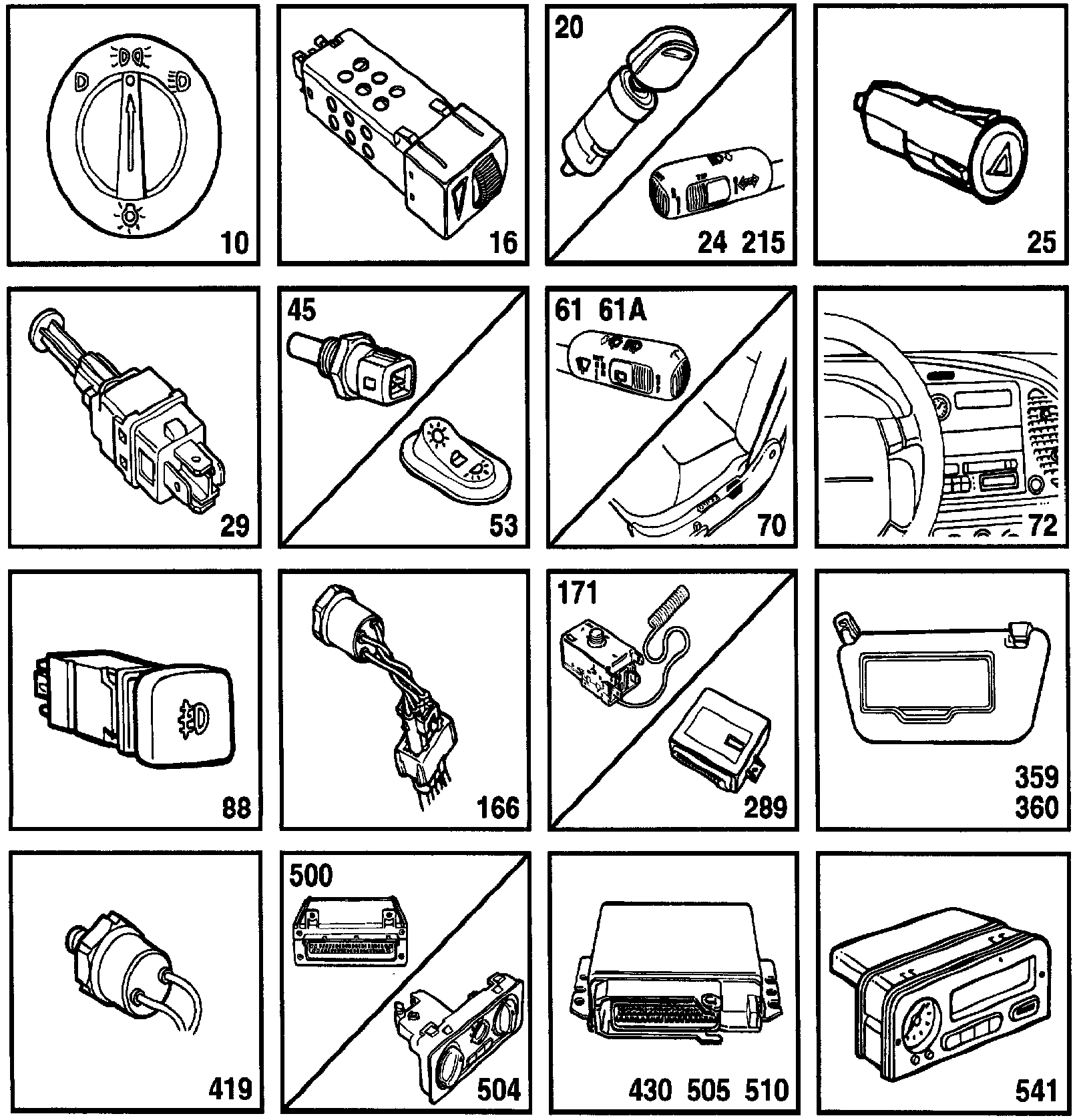 70 Seat-belt switch, driver's seat, in the belt buckle.
