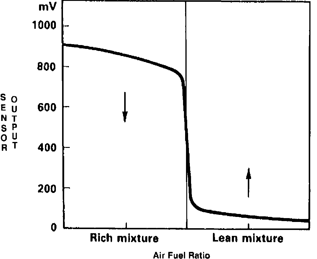 The sensor signal voltage is in direct proportion to the amount of oxygen in the exhaust gases. This depends on the air/fuel ratio. A "Lambda" value of 1 represents the theoretically perfect ratio. A rich mixture results in a higher voltage then a lean mixture.