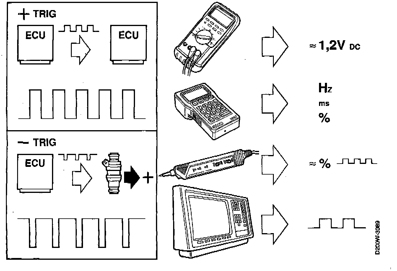 Measuring With Intelligent Saab Tester (ISAT)Or Multimeter With Pulse Measuring Function.
