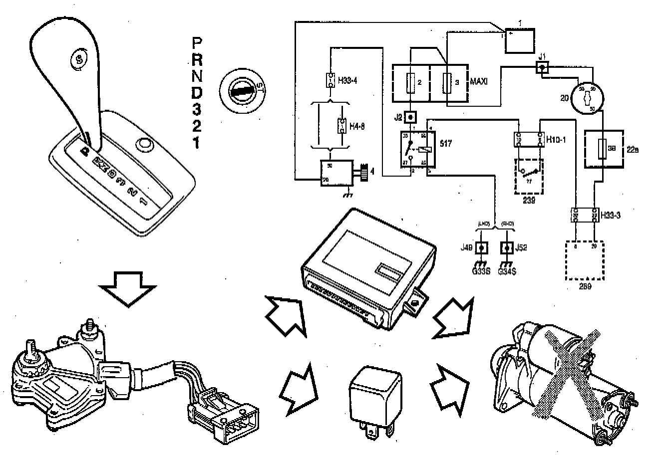 In all other gear positions the starting interlock switch is open and no current is supplied to the starting relay.