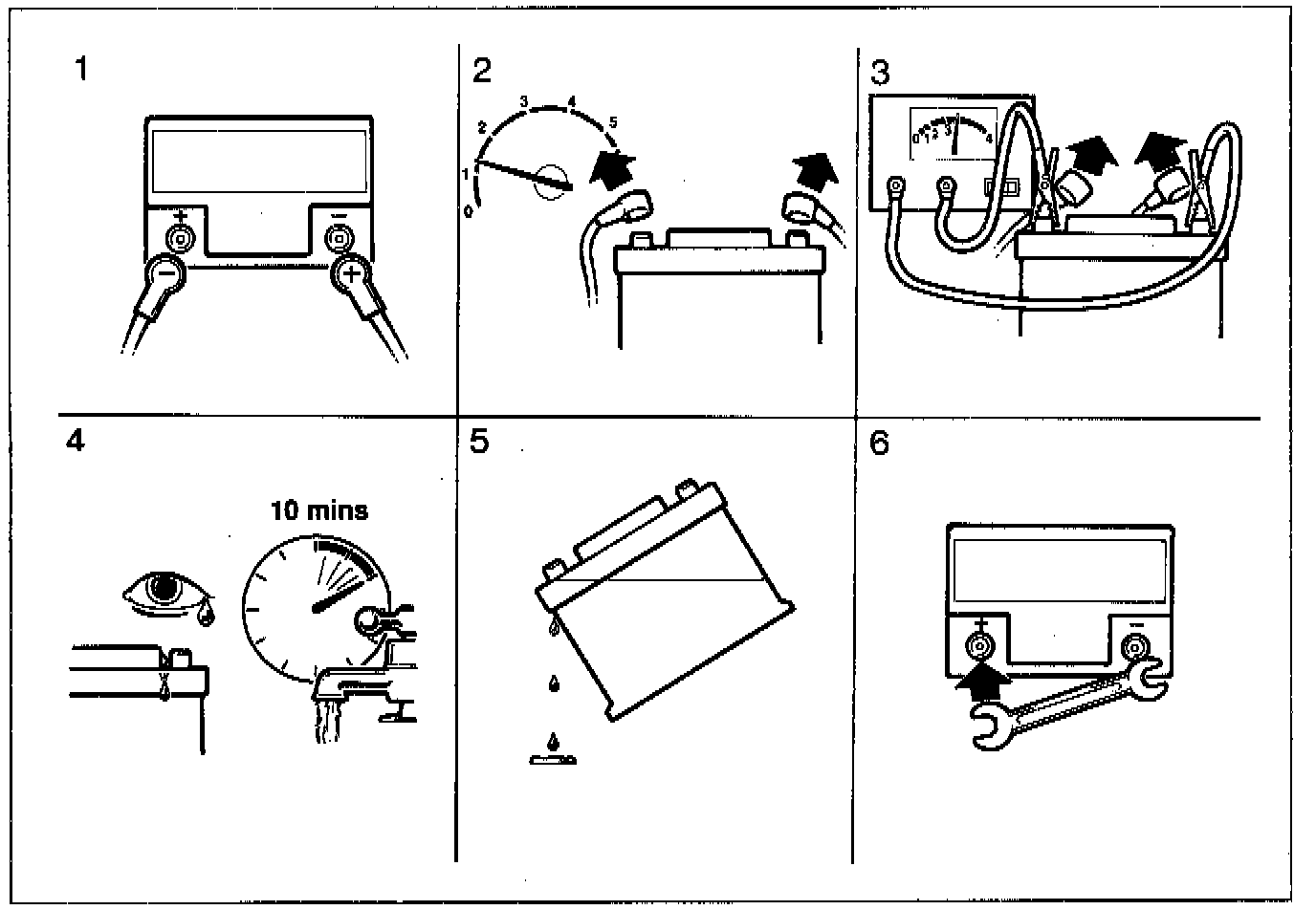 5 Make sure that the battery is always kept upright and horizontal. The acid may run out and cause damage through corrosion.