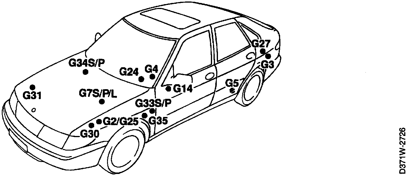 There are two types of grounding points on the car: those having a component number and those where a component is grounded directly to the chassis, such as a temperature sensor, oil pressure sensor, etc.