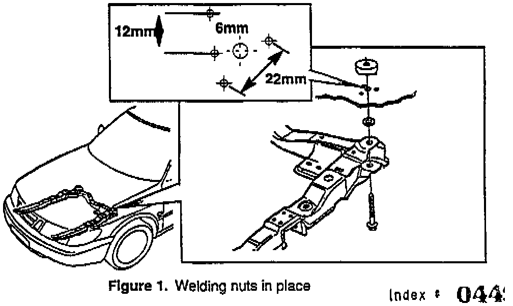 If the welded nuts have become detached, but the bolt is in position, the head of the bolt must be cut off first. Then, weld the nuts in place as follows: