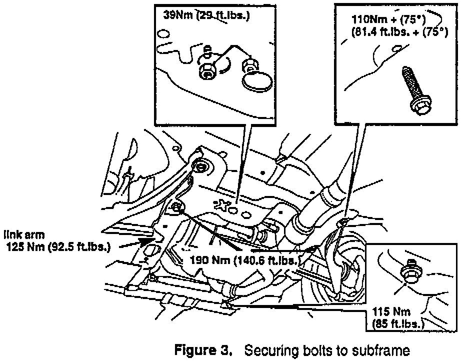 Use new bolts (P/N 43 45 666) for the rear subframe mounting joints.