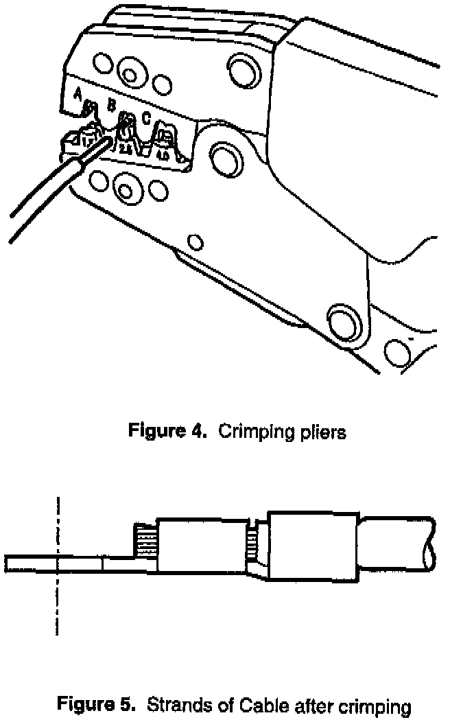 9. Place the terminal in the crimping tool. as shown in Figure 3, and squeeze the handles of the tool together just hard enough to hold the terminal in position.