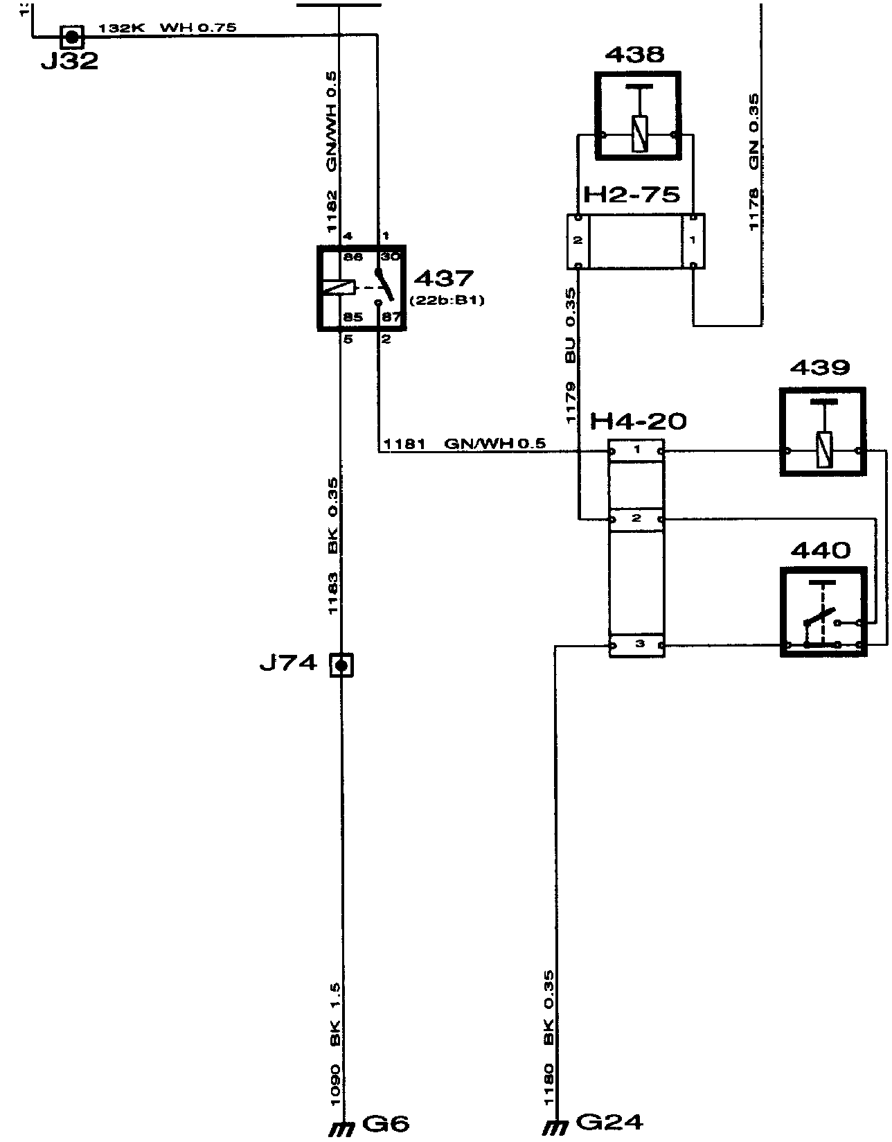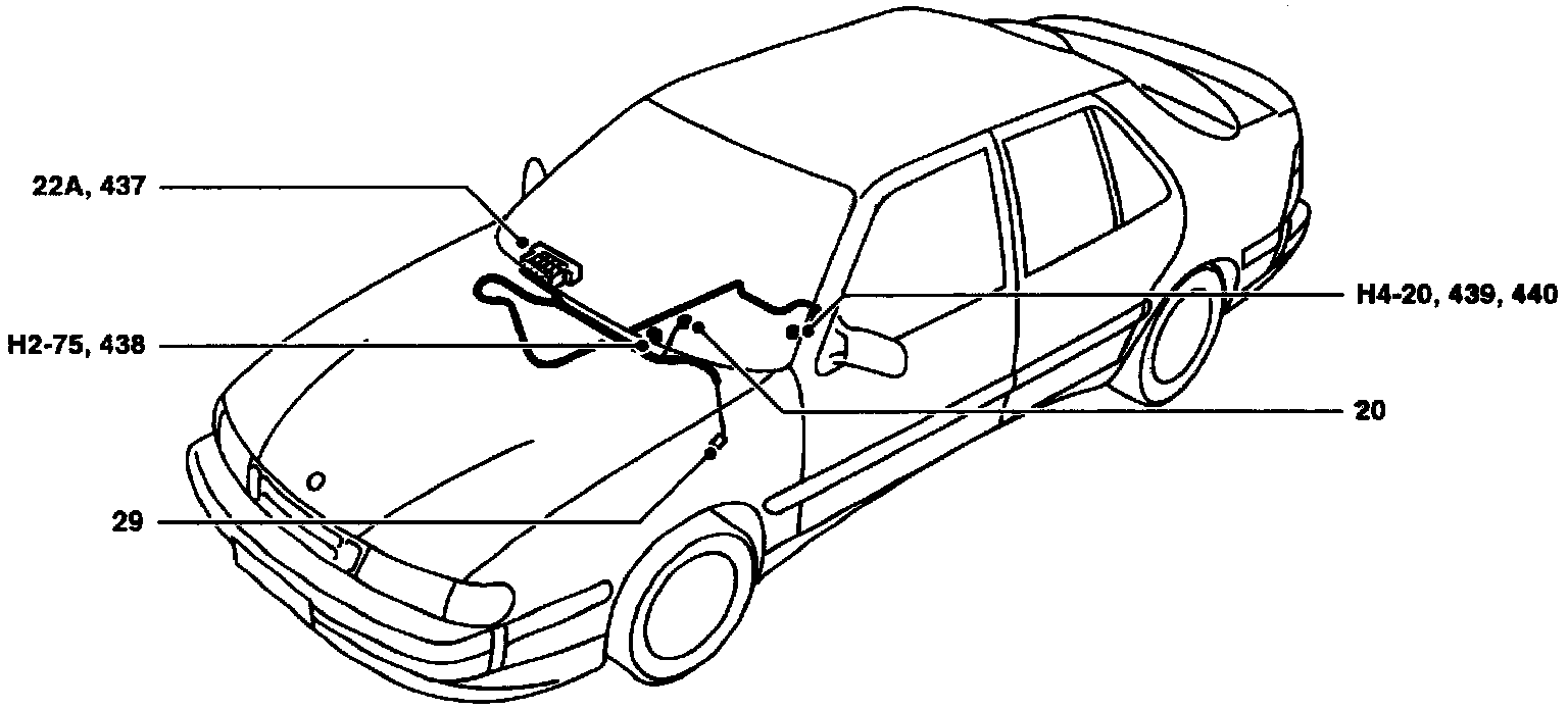 437 Relay, starter motor interlock, in the main fuse box behind the glove box (22B:B1).