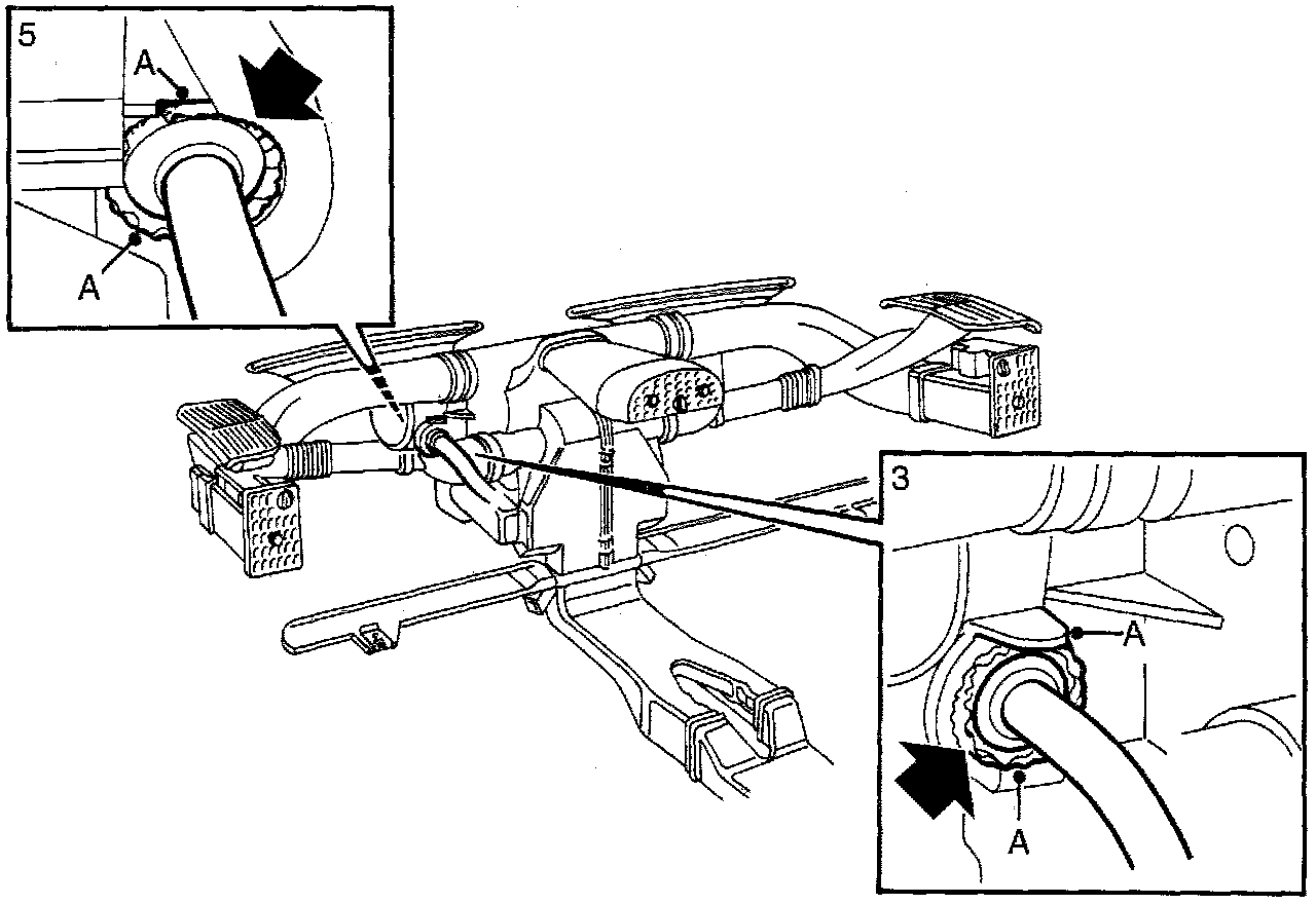 When recirculation is selected, some air leakage may occur at the cable entry beside the heating and ventilation unit. This is due to excess pressure building up at the fresh air intake when the recirculation damper is closed. Air leakage can cause a high-frequency noise to develop at speeds above 100 km/h. This air leakage is corrected by sealing the cable entry with a suitable sealant. To ensure that this measure will be fully effective, the cable entry should be sealed on both sides, from the cabin and the engine compartment.
