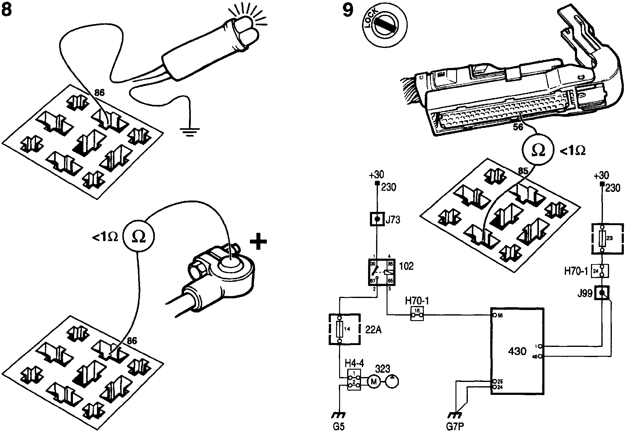 If the test lamp does not light up, check the lead between pin 86 and battery positive and take remedial action if necessary.