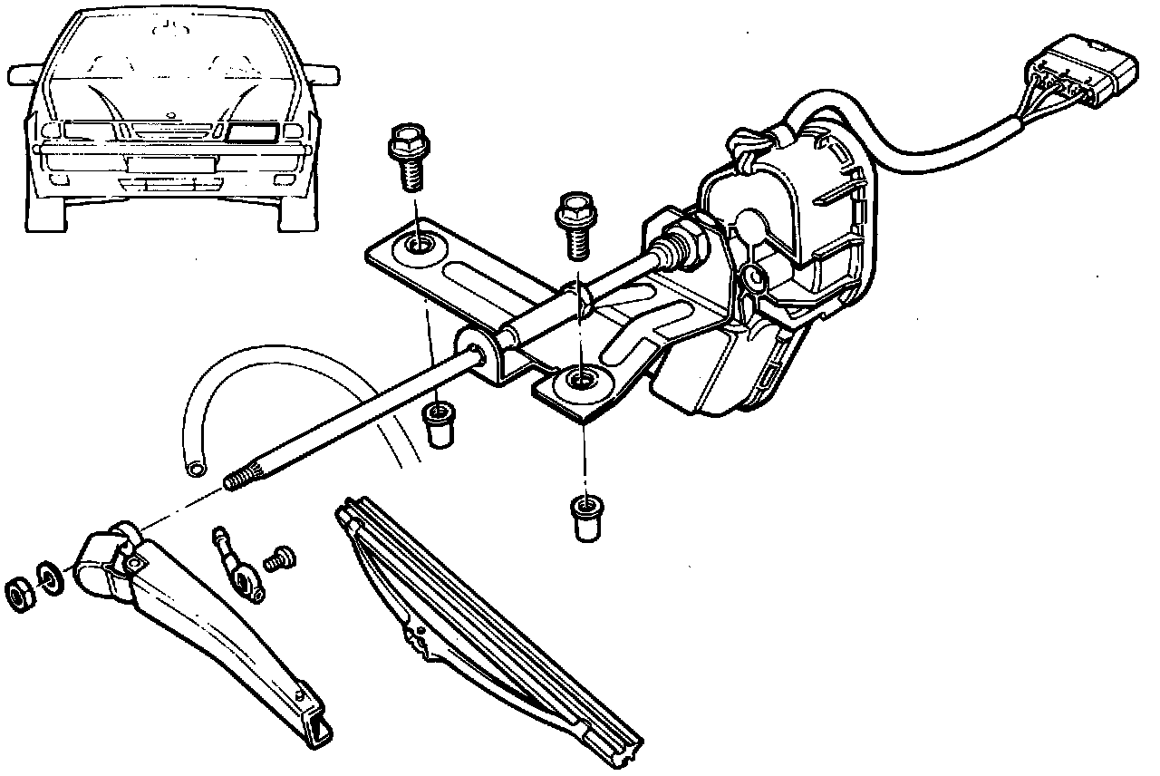 5 Remove the wiper motor (2 bolts) and unplug the connector.