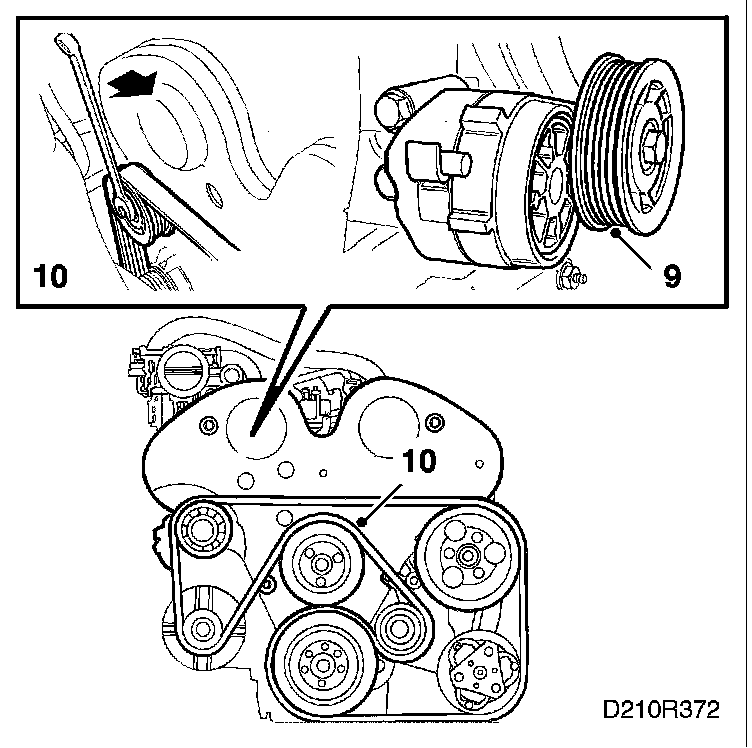 9. Refit the belt tensioner.