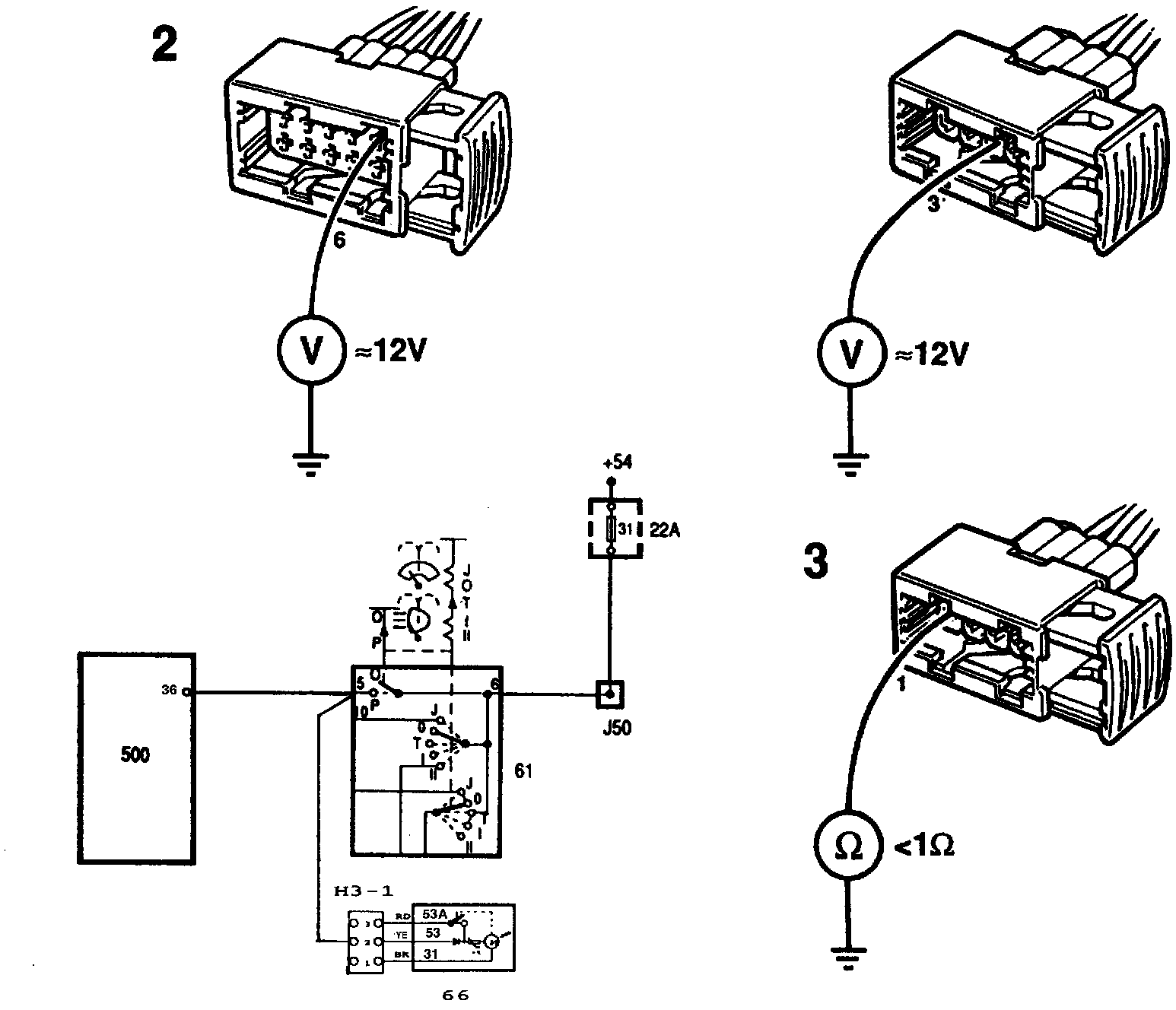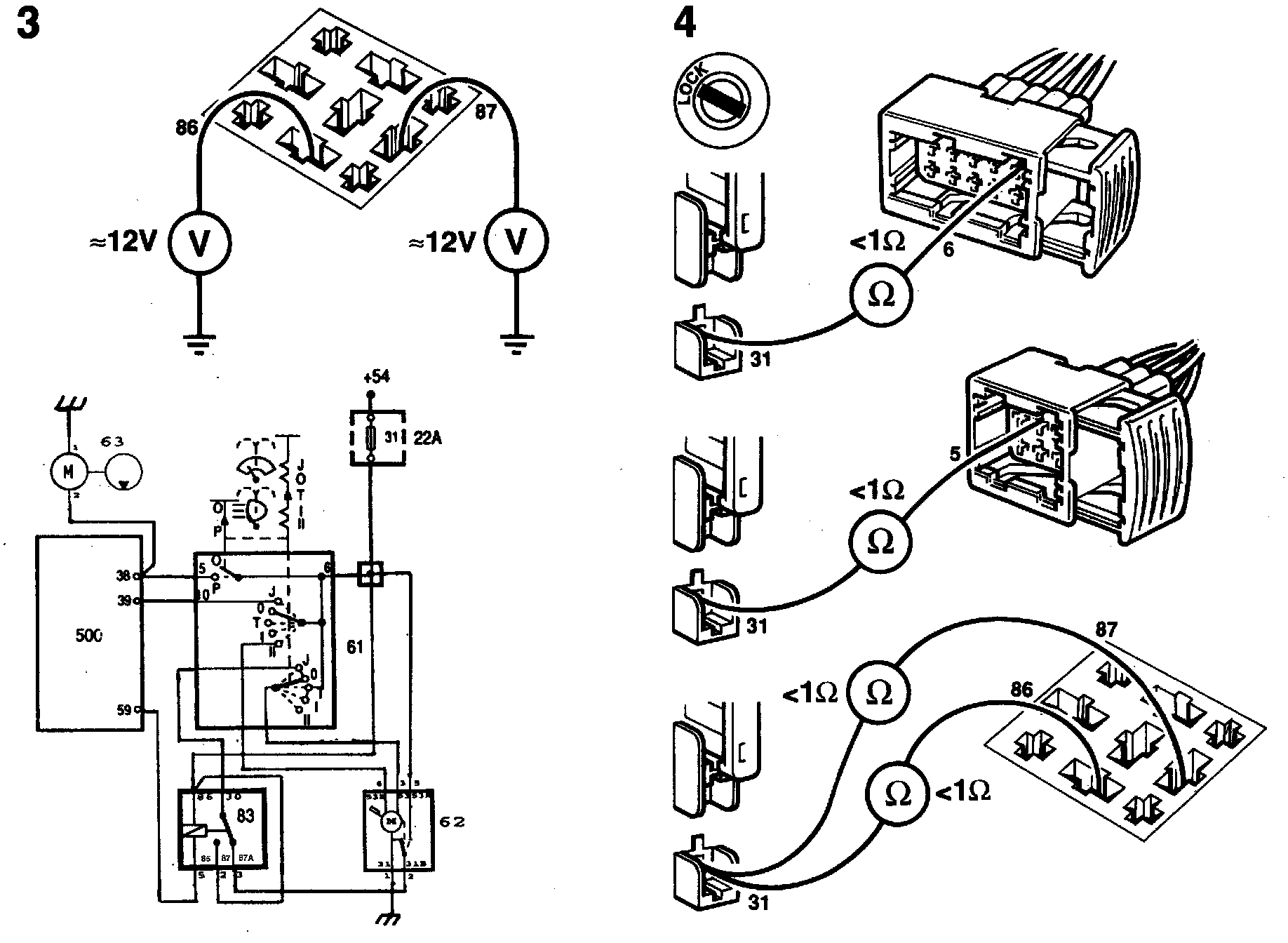- pin 3 of the headlamp wiper motor connector (parking circuit).