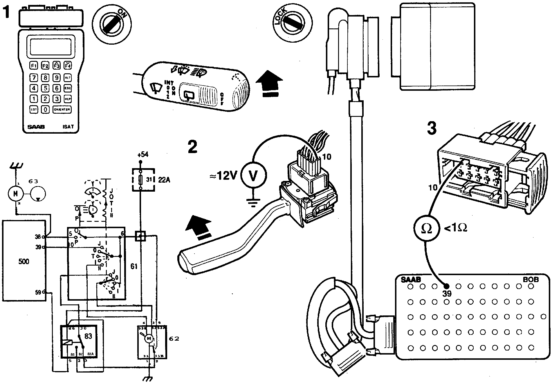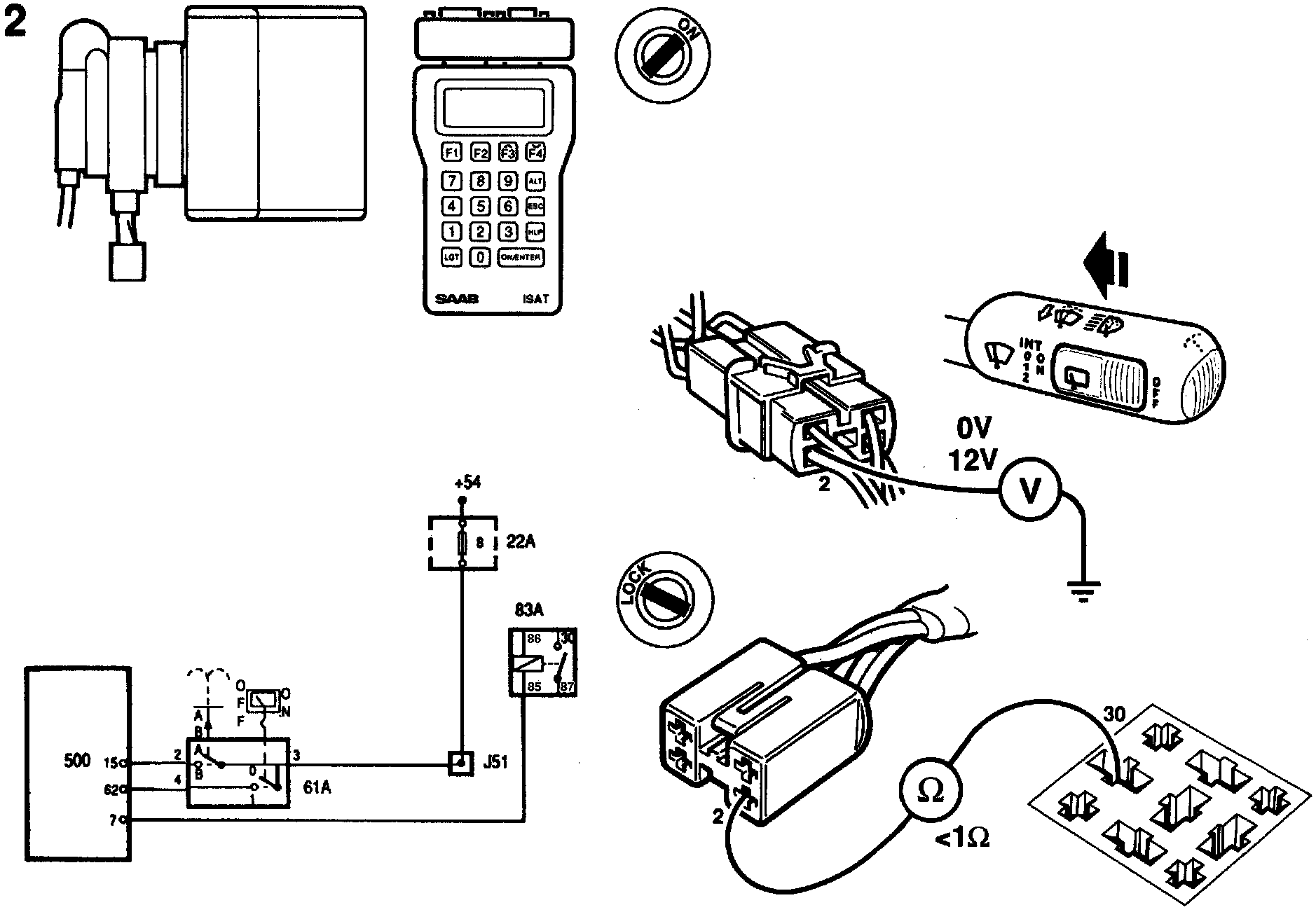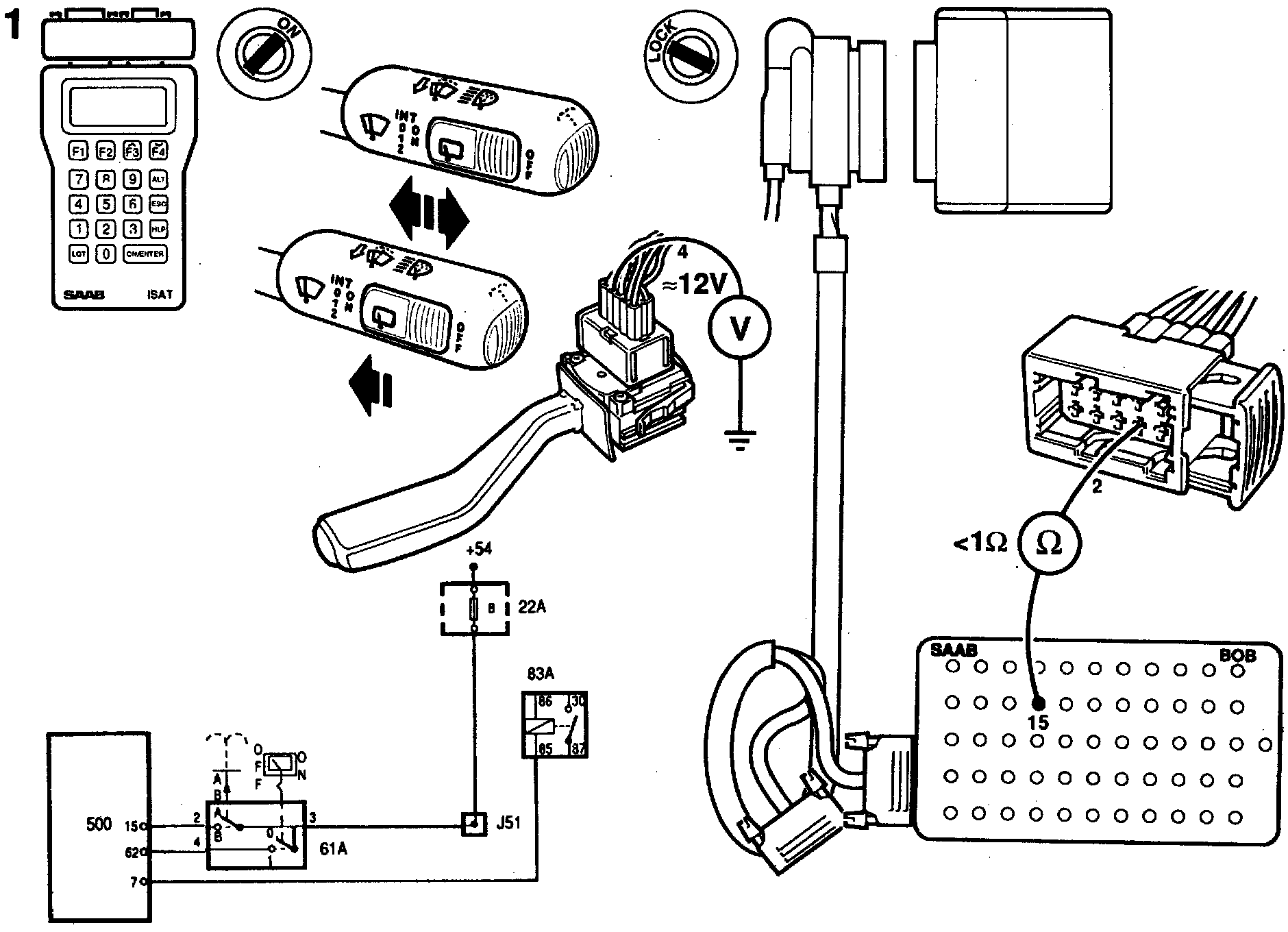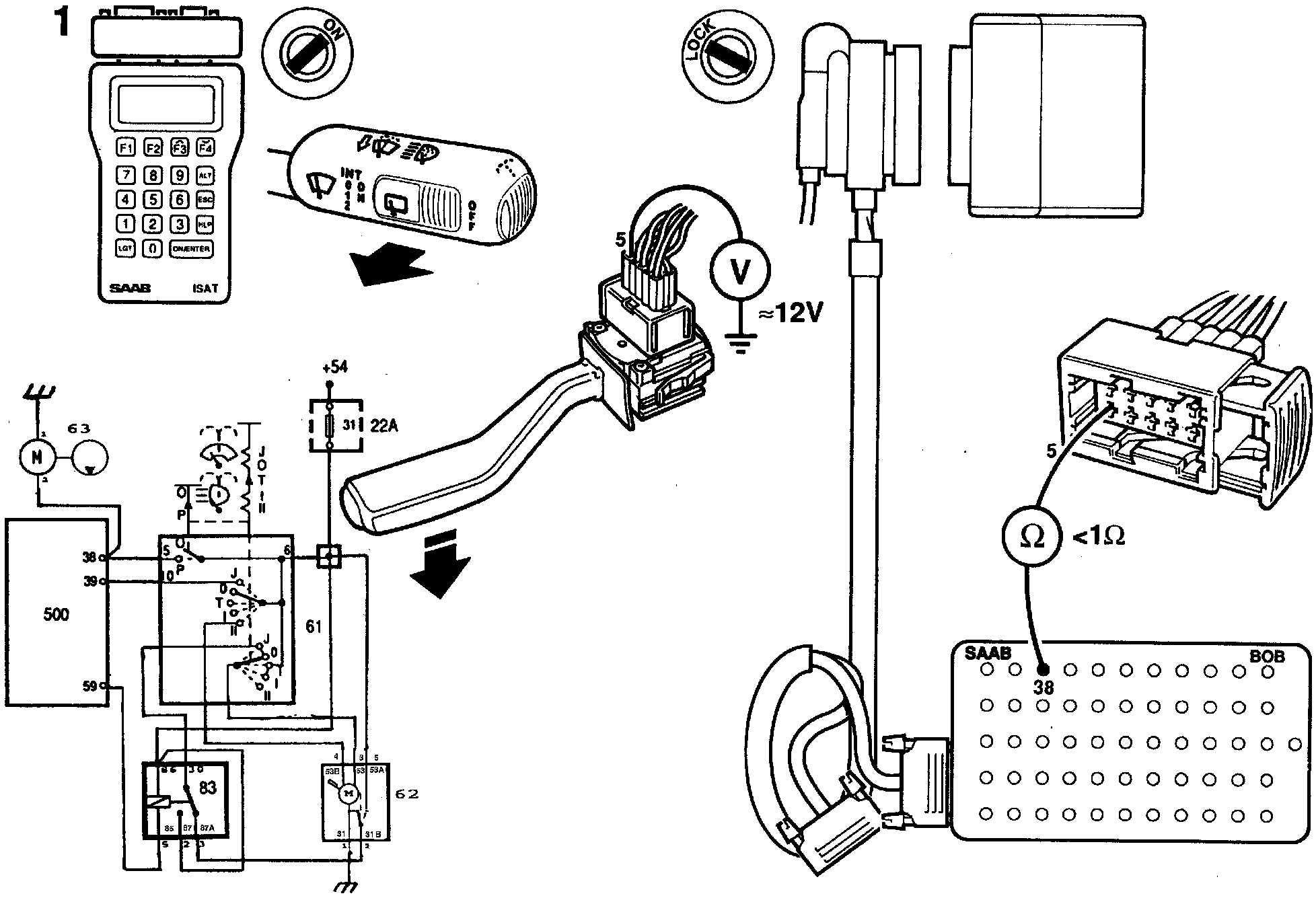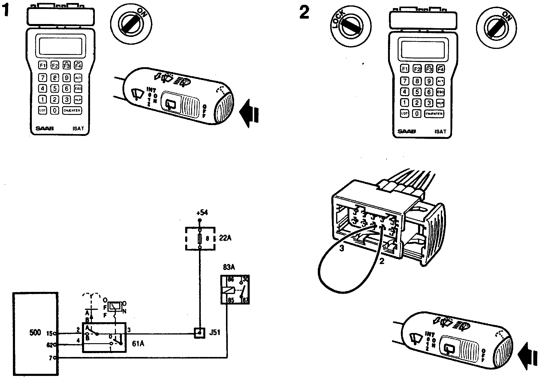 1 Check the switch and position P for windshield washing by selecting "READ SWITCHES" from the ISAT scan tool menu and then "WINDSOR. WASH/WIPE".