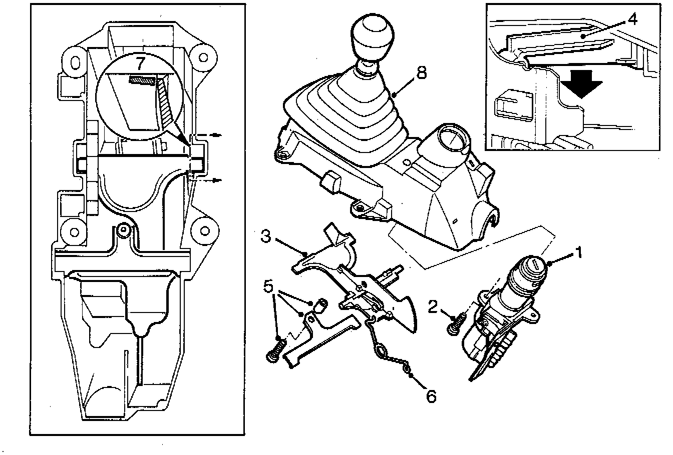 7. Adjust the position of the locking plate with the screw on the locking plate holder, so that the locking plate is on a level with the heel in the gear lever housing.