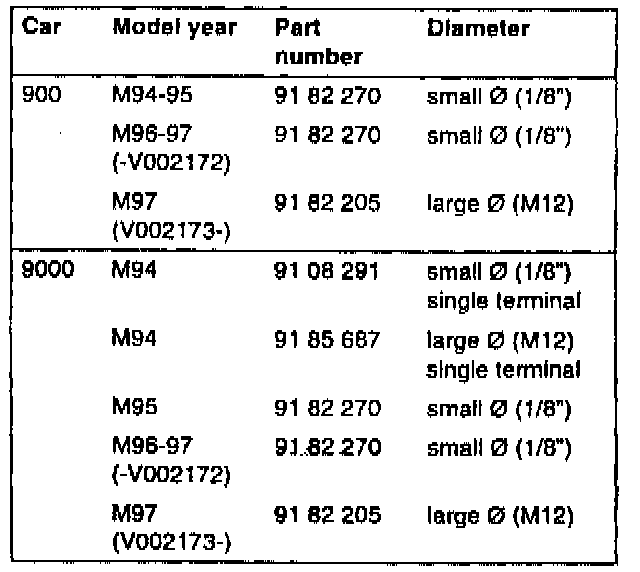 Saab 900 and 9000 4-cyl. M94-M97, up to and including engine number V002172.