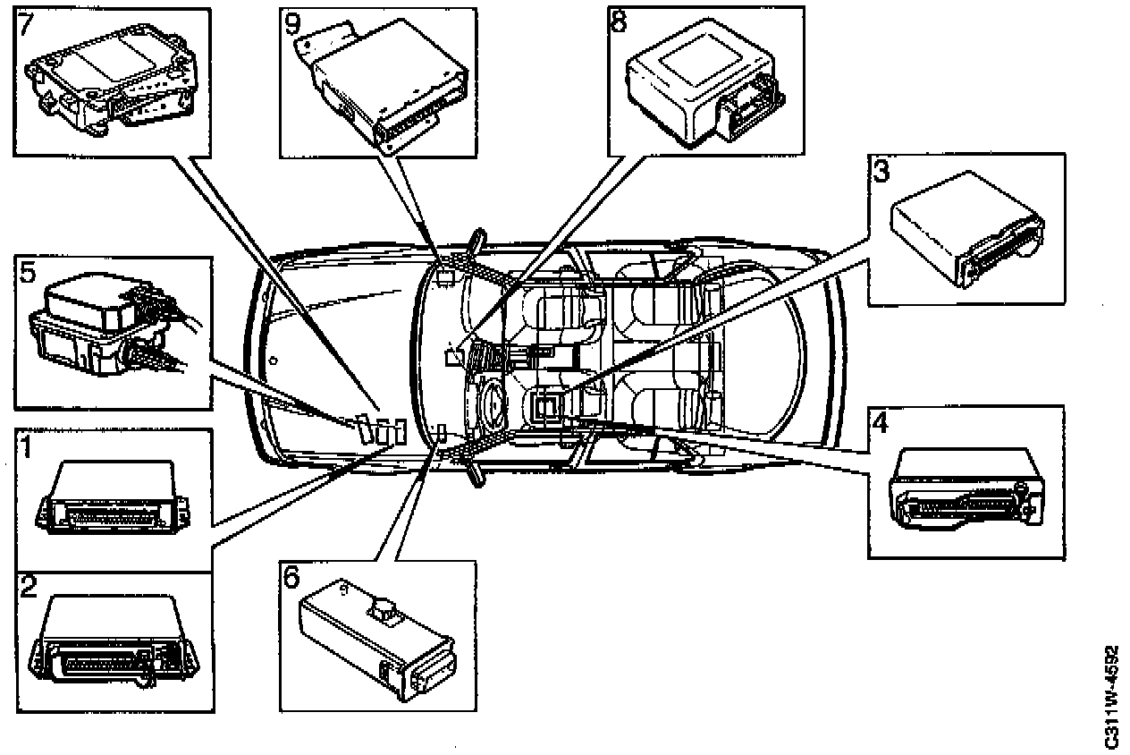 The control modules are located on a bracket in the false bulkhead space. The bracket is mounted on the left-hand side of the front upper bulkhead partition.