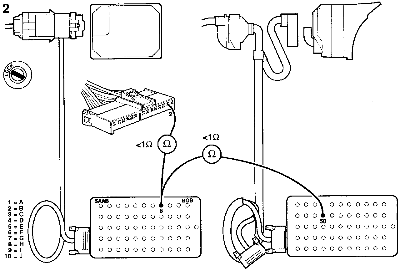 2 If the voltage is OK, check the wiring for continuity or a short circuit by measuring the resistance across pin 8 (H) of the Cruise Control connector and pin 50 of main instrument panel 2 or pin 2 of main instrument panel 1.