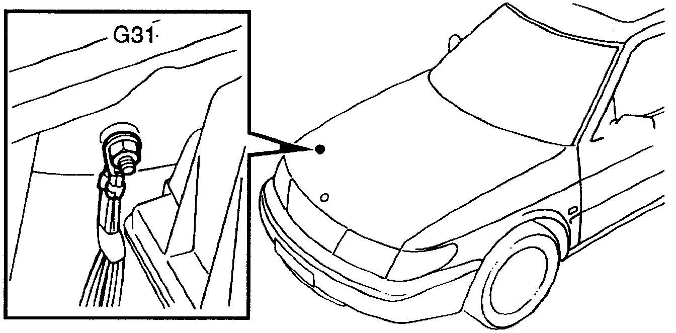 The following components are connected to grounding point G31 in the engine bay on the right-hand side: