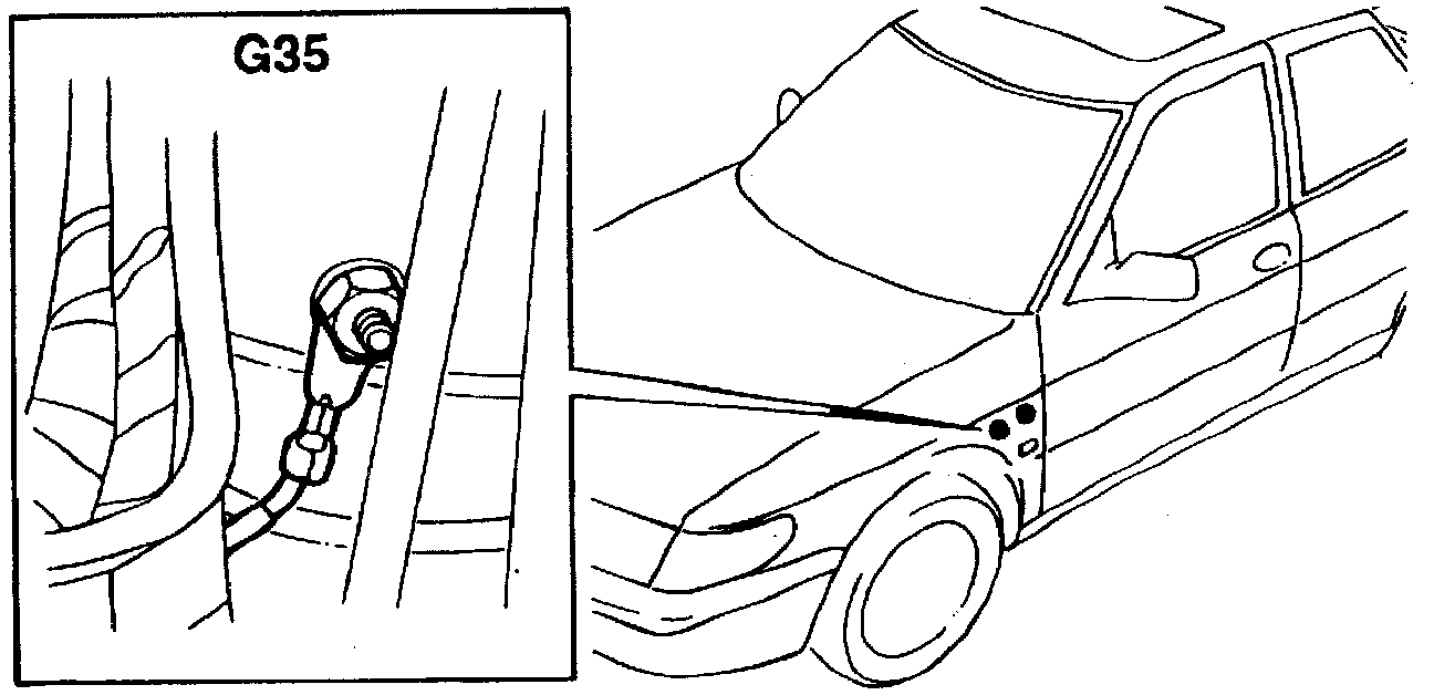 The following components are always connected to grounding point G35 behind the connector bracket below the A-pillar in the cabin on the left-hand side: