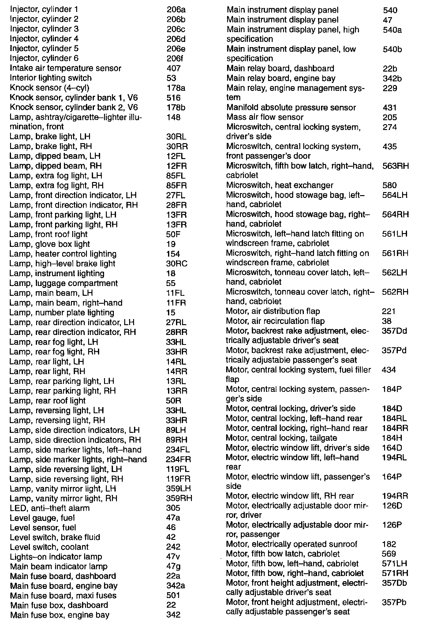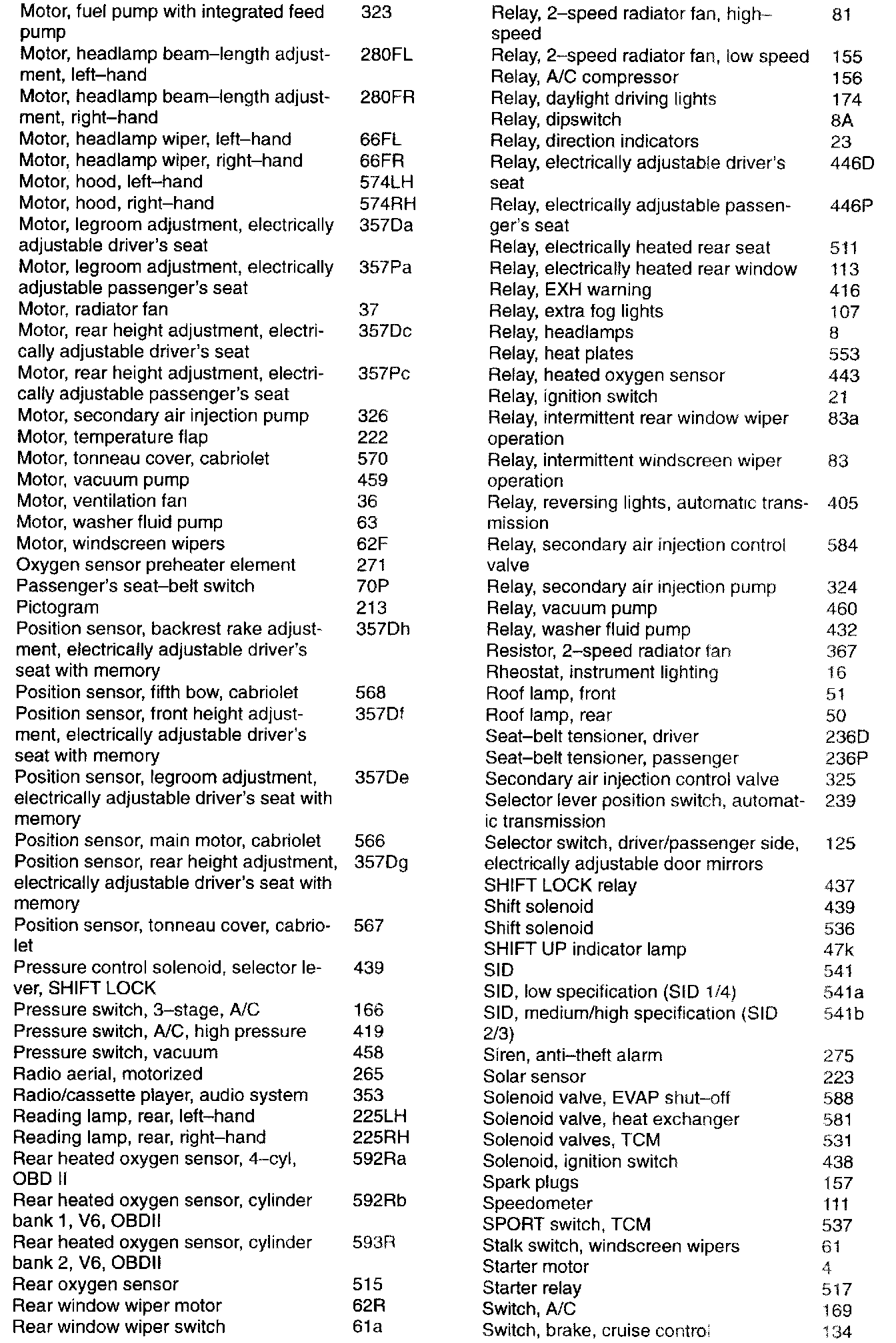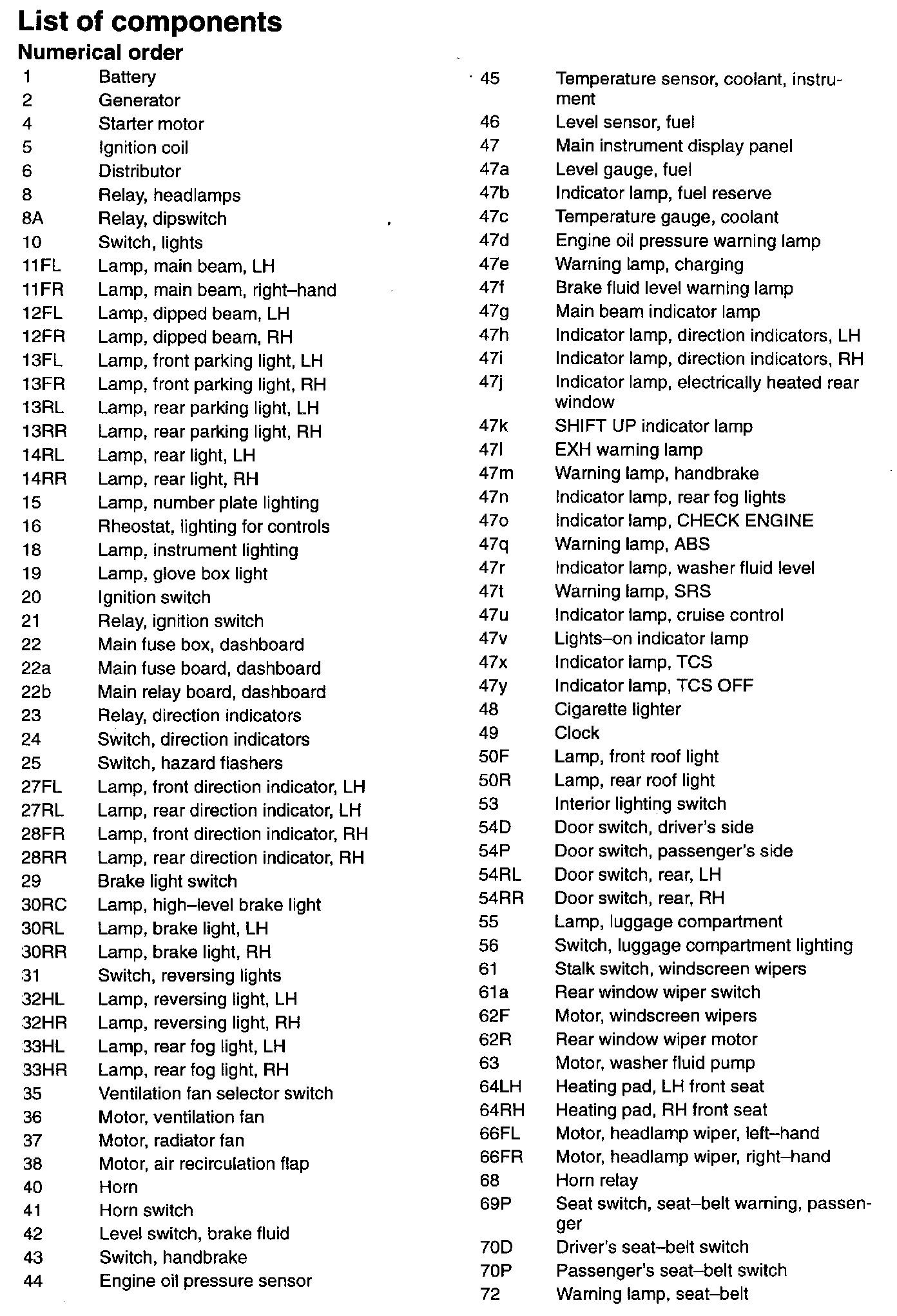 Component List by Number1 - 72: