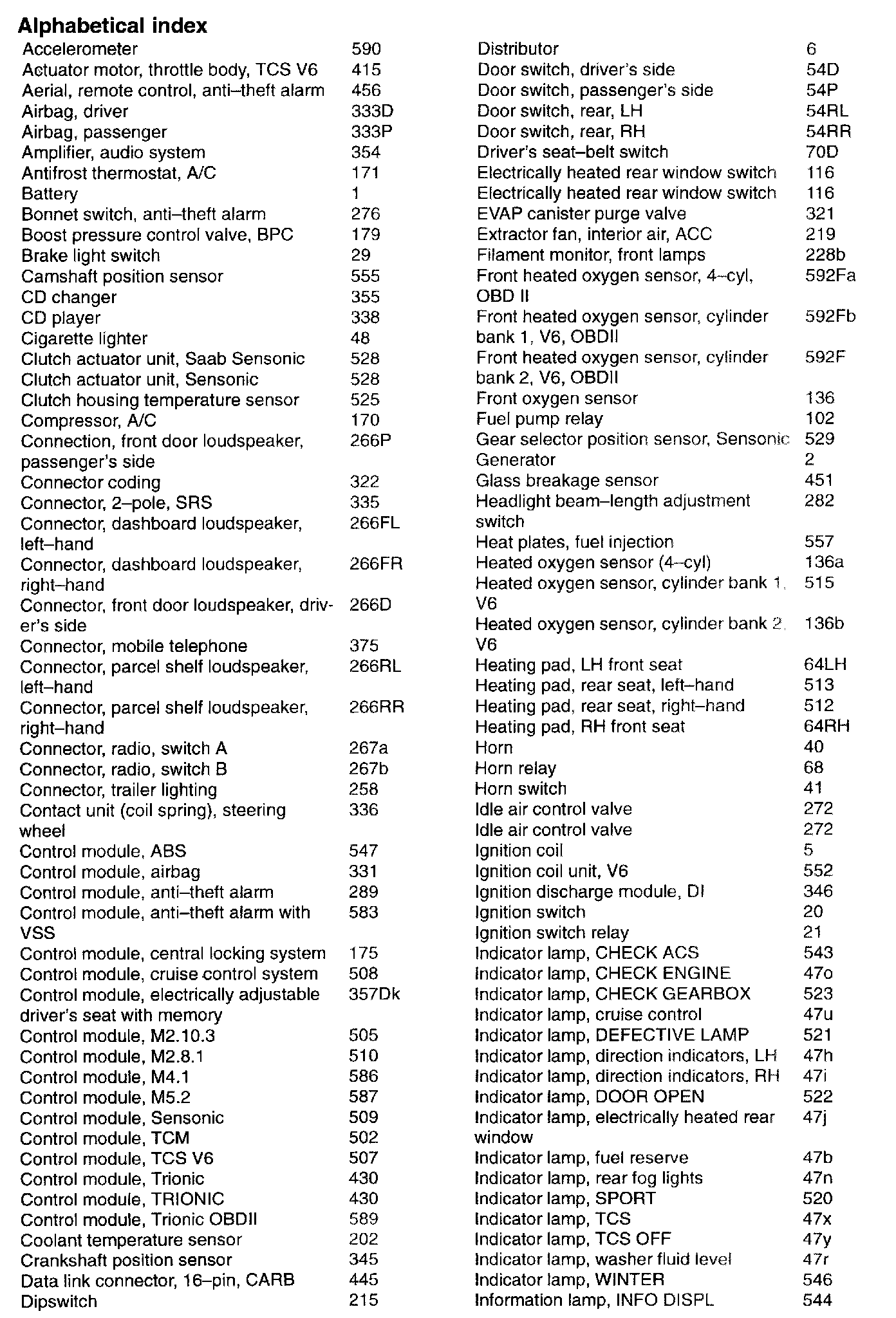 Component List by NameAccelerometer - Information Lamp, INFO DISPL: