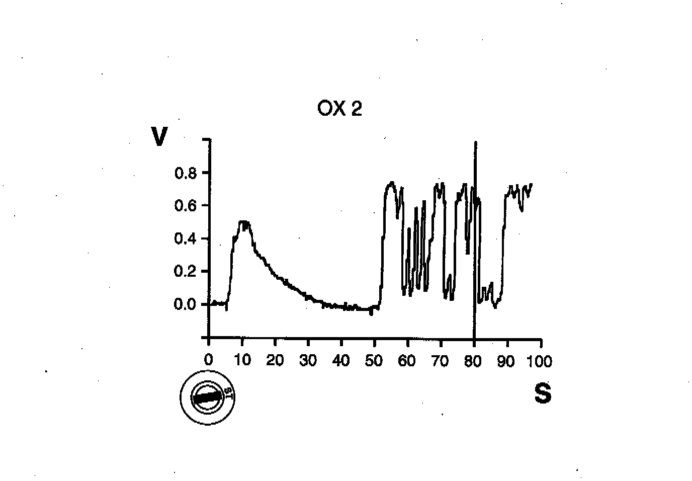 1. Sensor voltage rises once to above 400 mV within 500 seconds.