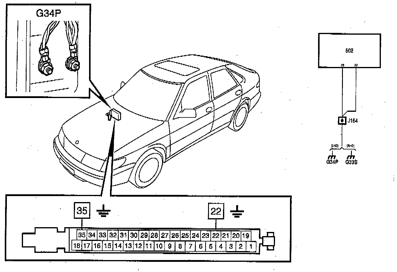 The ground connections to pins 22 and 35 are internally connected in the transmission control module and from an electrical viewpoint are the same point. The grounding points are duplicated to improve safety and functionality.