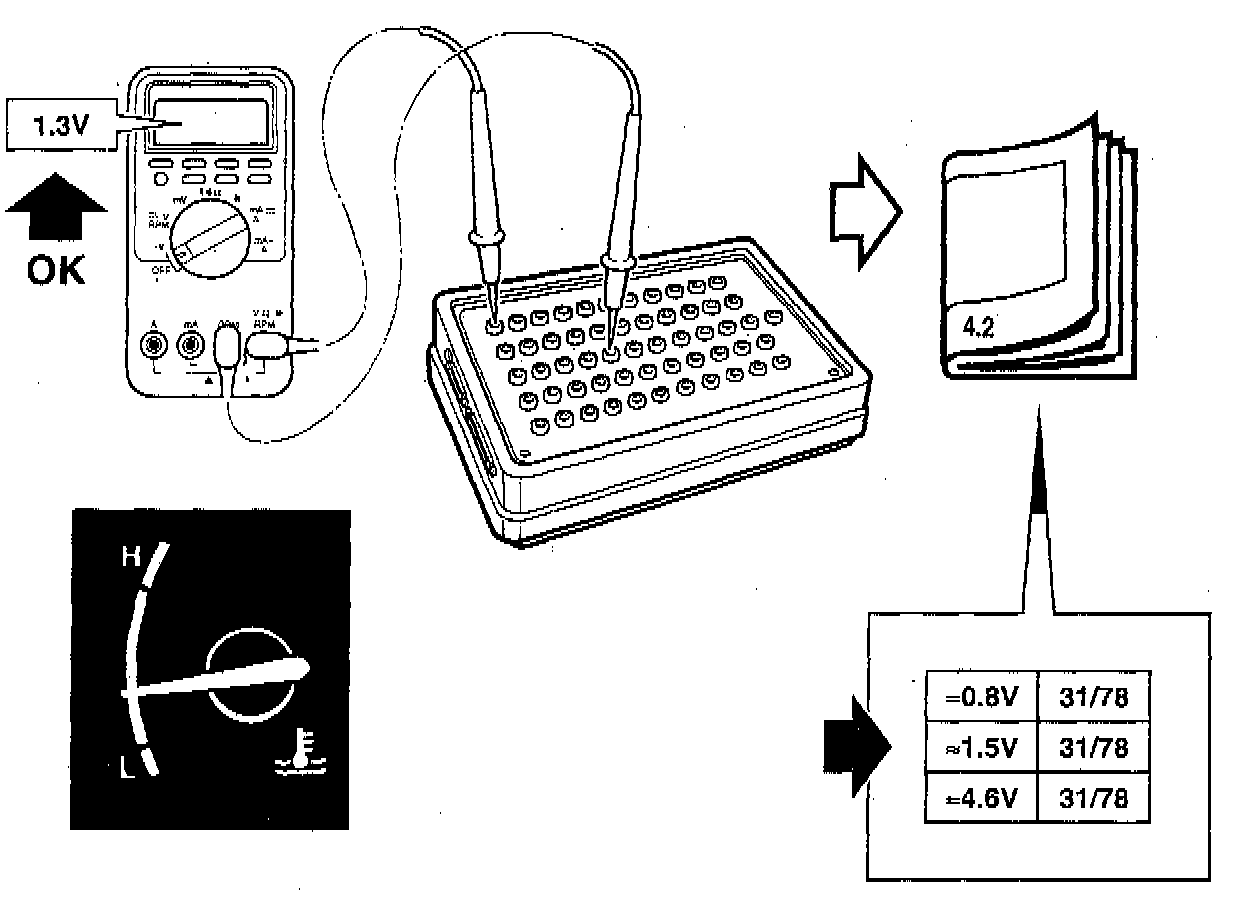 - Readings taken across these pins and ground (pin 35) will then show current battery voltage less 0.7-1.5 V, which is indicated in the tables shown.