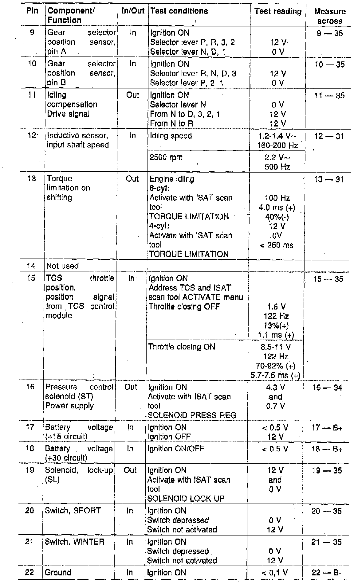 The following contains specified values and directions for measuring signals and levels on the transmission control module. Point to remember: