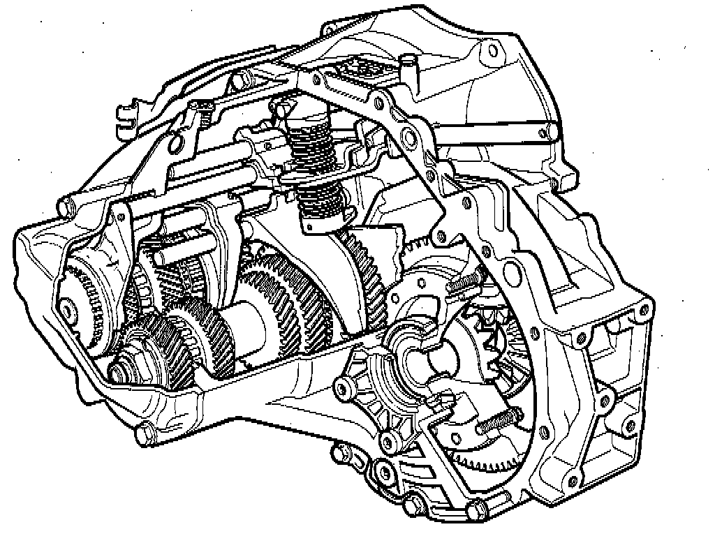 The manual gearbox is a five-speed gearbox. All gears (including reverse) are synchronized. The gearbox has relatively small rotating masses, and thus small moments of inertia to be braked at each gear change. This makes gear changing easy and smooth and interior wear on baulk rings and sleeves almost non-existent. The baulk rings are placed on the input and output shafts.