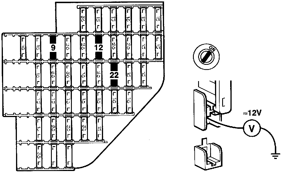 1 Check that the fuse is intact and that a 12 V supply is present across it, as in the table below.