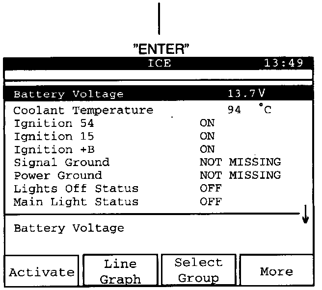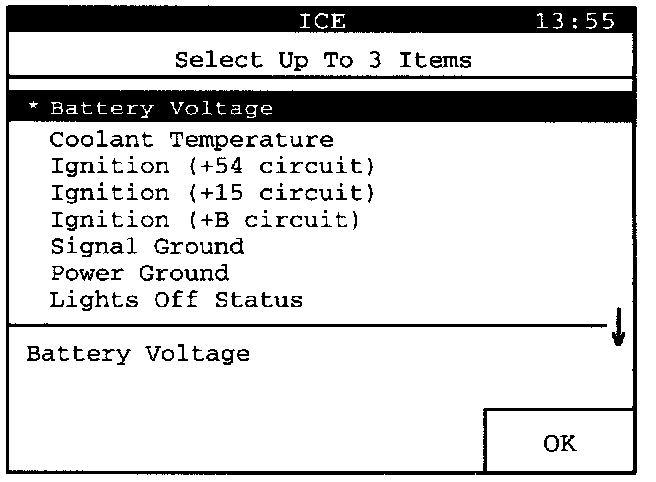 Select up to 3 items for display simultaneously with "Line Graph". Position the cursor on the desired value and press "ENTER" to select the value. The selected value will be marked with an asterisk "*" at the beginning of the line.