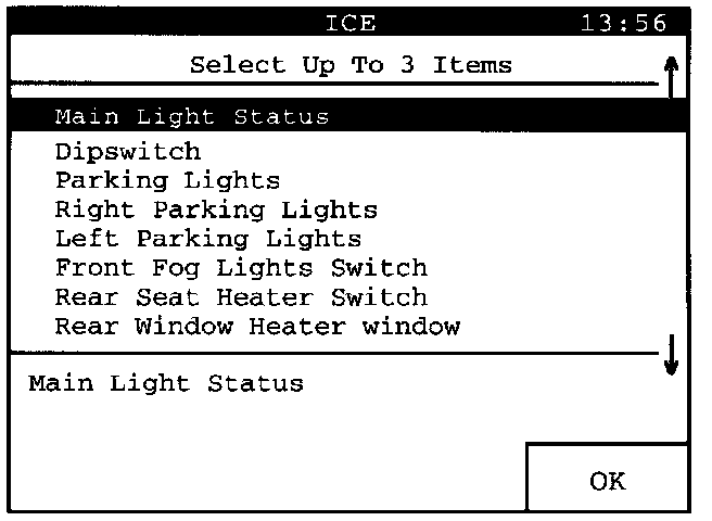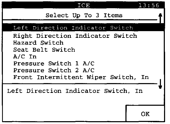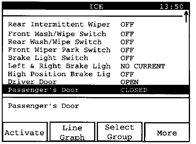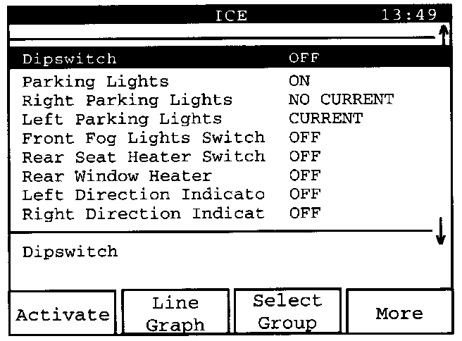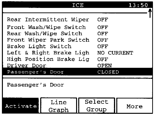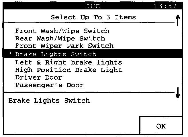 Select "Brake Lights Switch". Then press the "OK" display key to have the selected values presented as a "Line Graph".