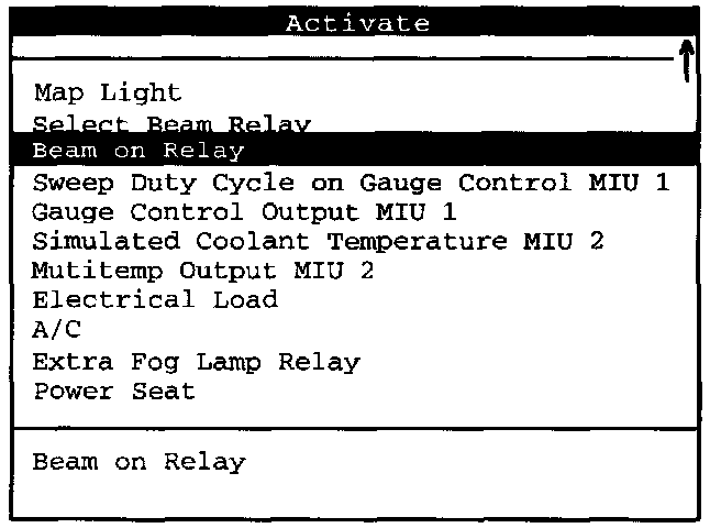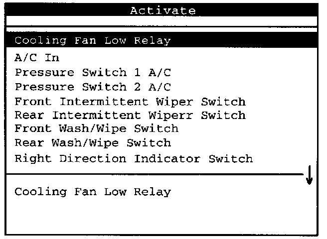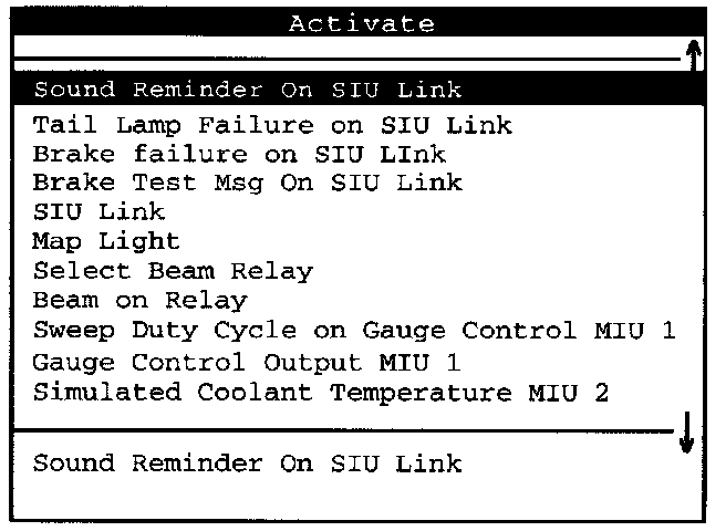 Here is a list of all available actuators. Press the right arrow selection key to scroll to the next display of activation commands.