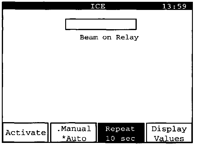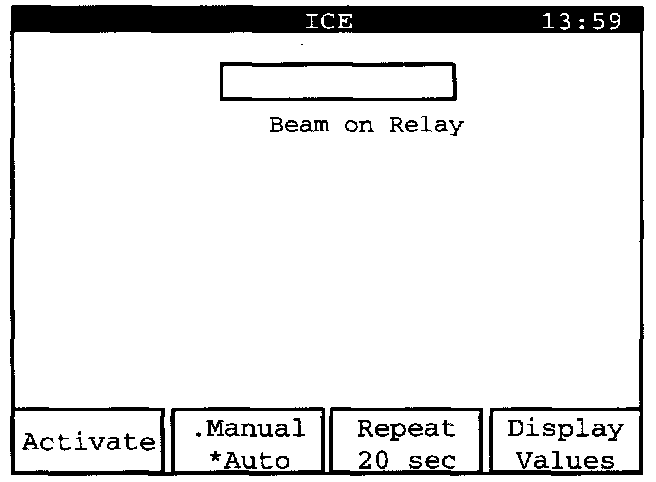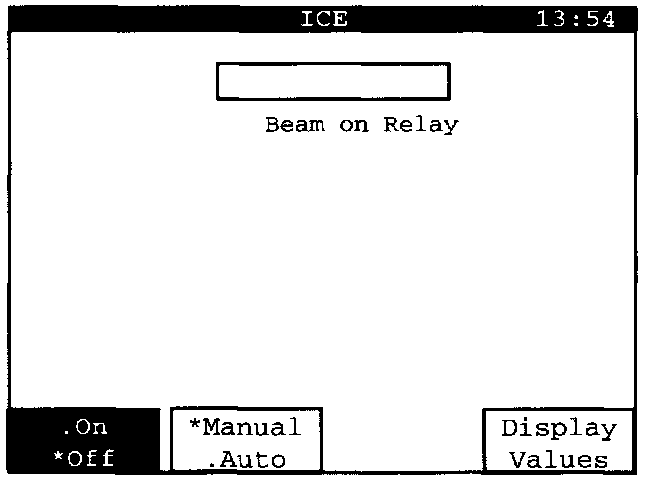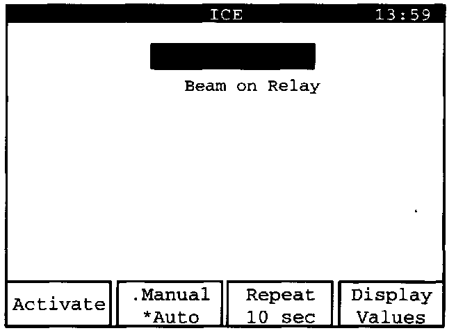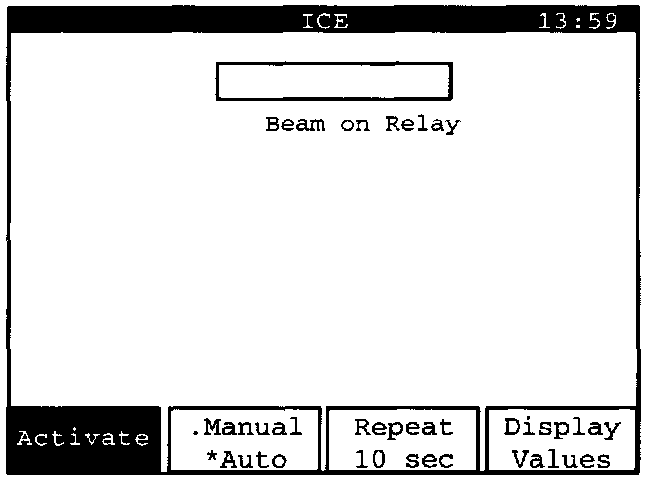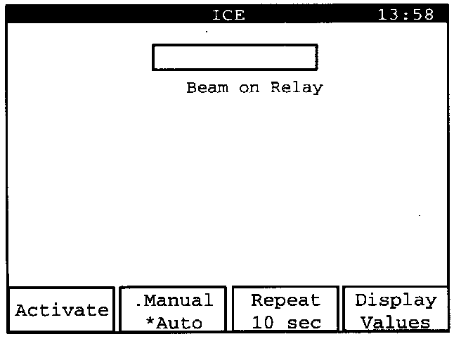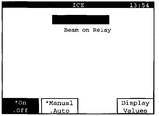"Beam on Relay" can be activated manually or automatically. Manual activation is set here, which is shown by an asterisk "*" next to the word "Manual" on the "Manual/ Auto" display key.