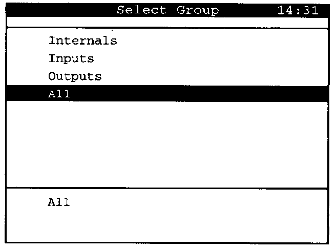 Press the "Select Group" display key to select the category of values that is to be shown in the read values list.