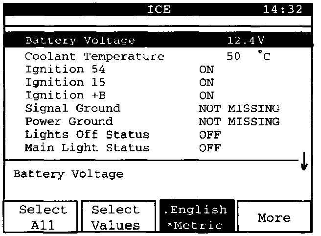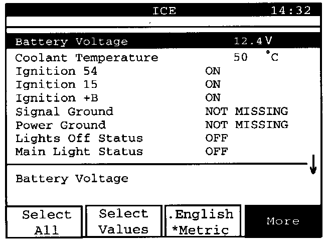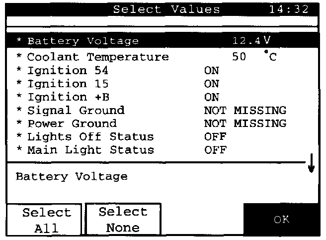 Here is the list of all read values that are available in the system concerned. The down arrow on the right at the bottom of the display indicates that the list consists of more values downward than can be