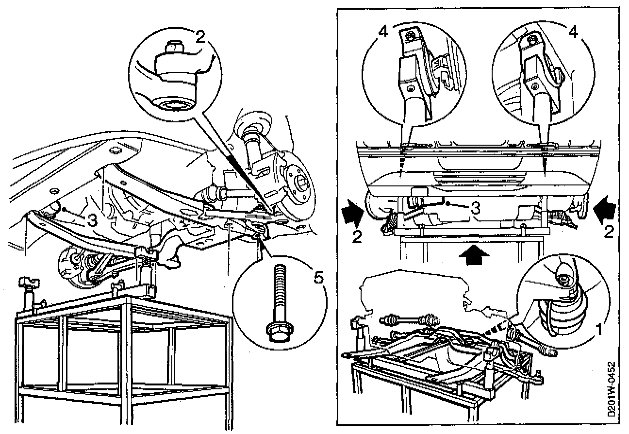 5. Tighten the sub-frame retaining bolts, then tighten as follows: