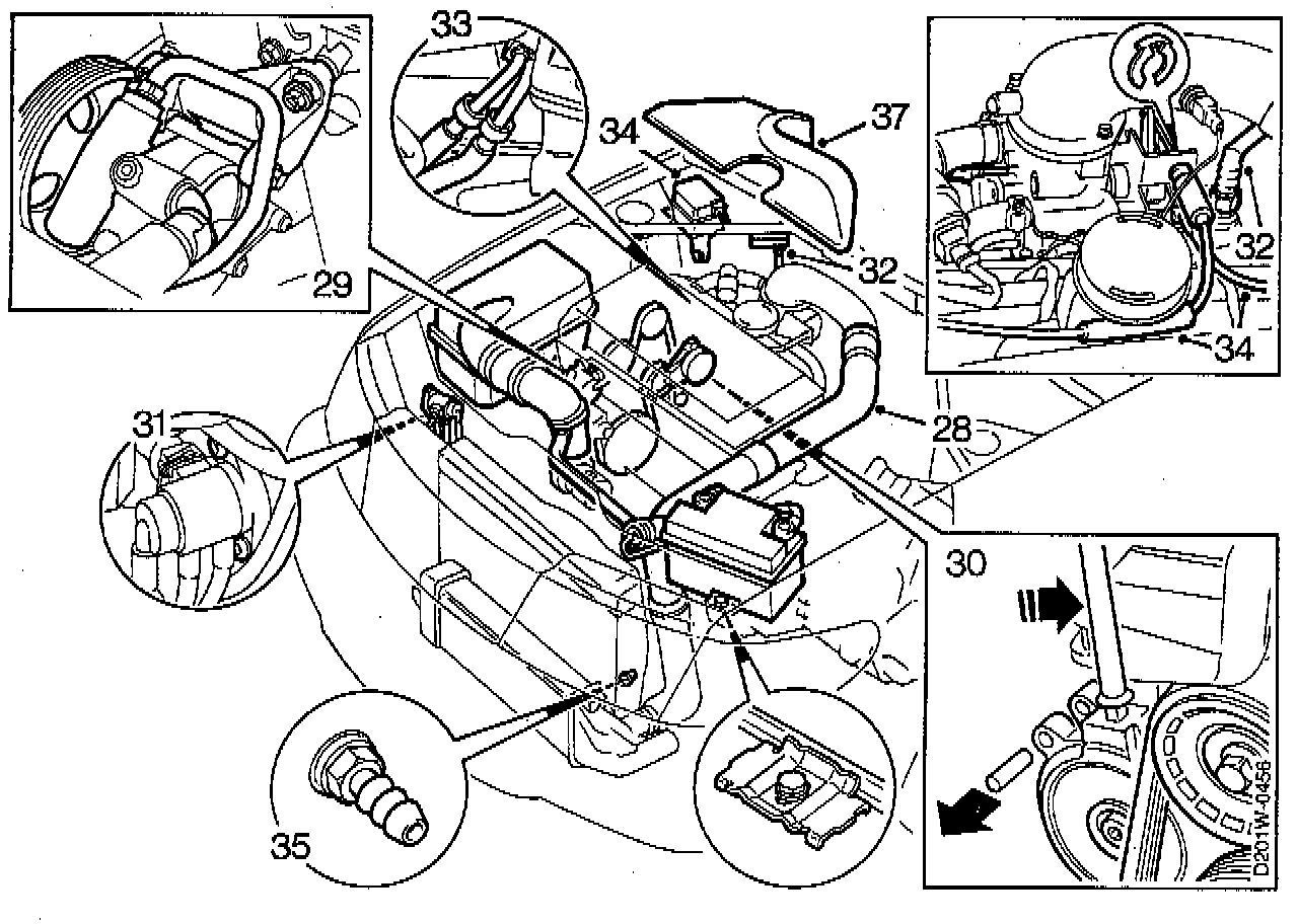 35. Make sure that the radiator drain plug is tight, fill up with coolant and check the system for leaks.