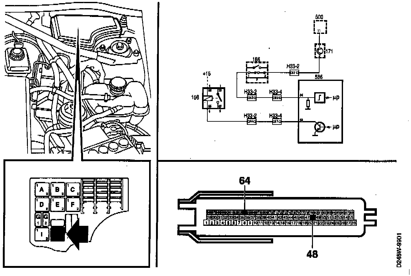 Via pin 48 the Motronic control module then grounds the A/C relay which in its turn control tie A/C compressor ("A/C OUT" or "A/C RELAY").