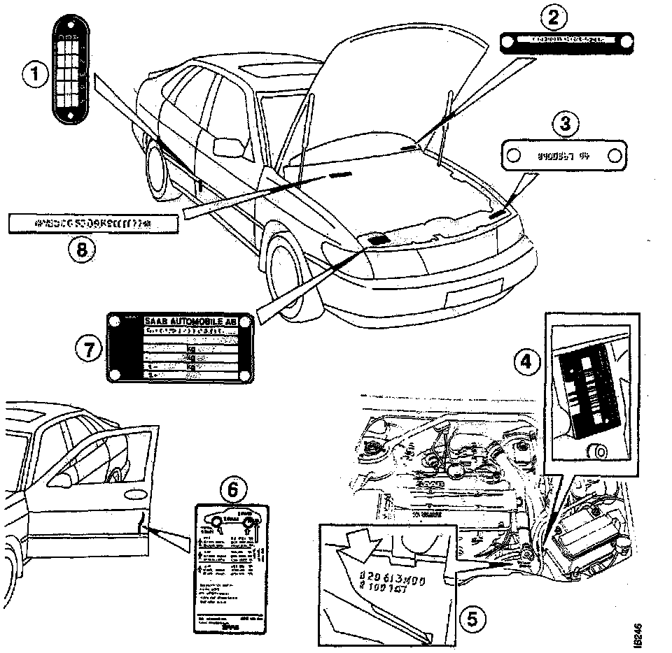 When you contact your Saab dealer, it can sometimes be important to know your car's chassis number, engine number and gearbox number.