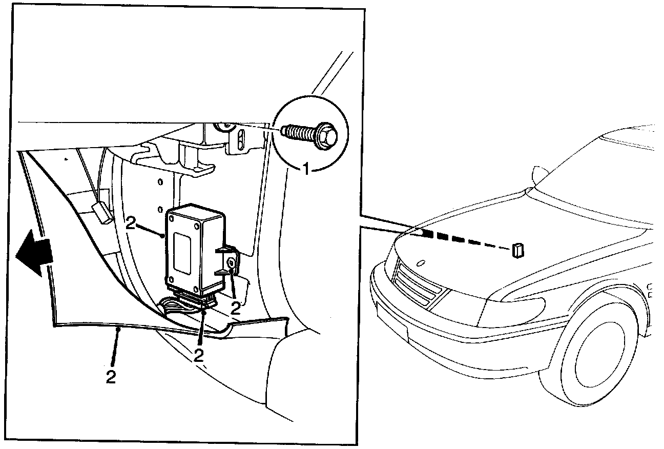 2 Fold the carpet aside and remove the bolts securing the control module and unplug the connector.