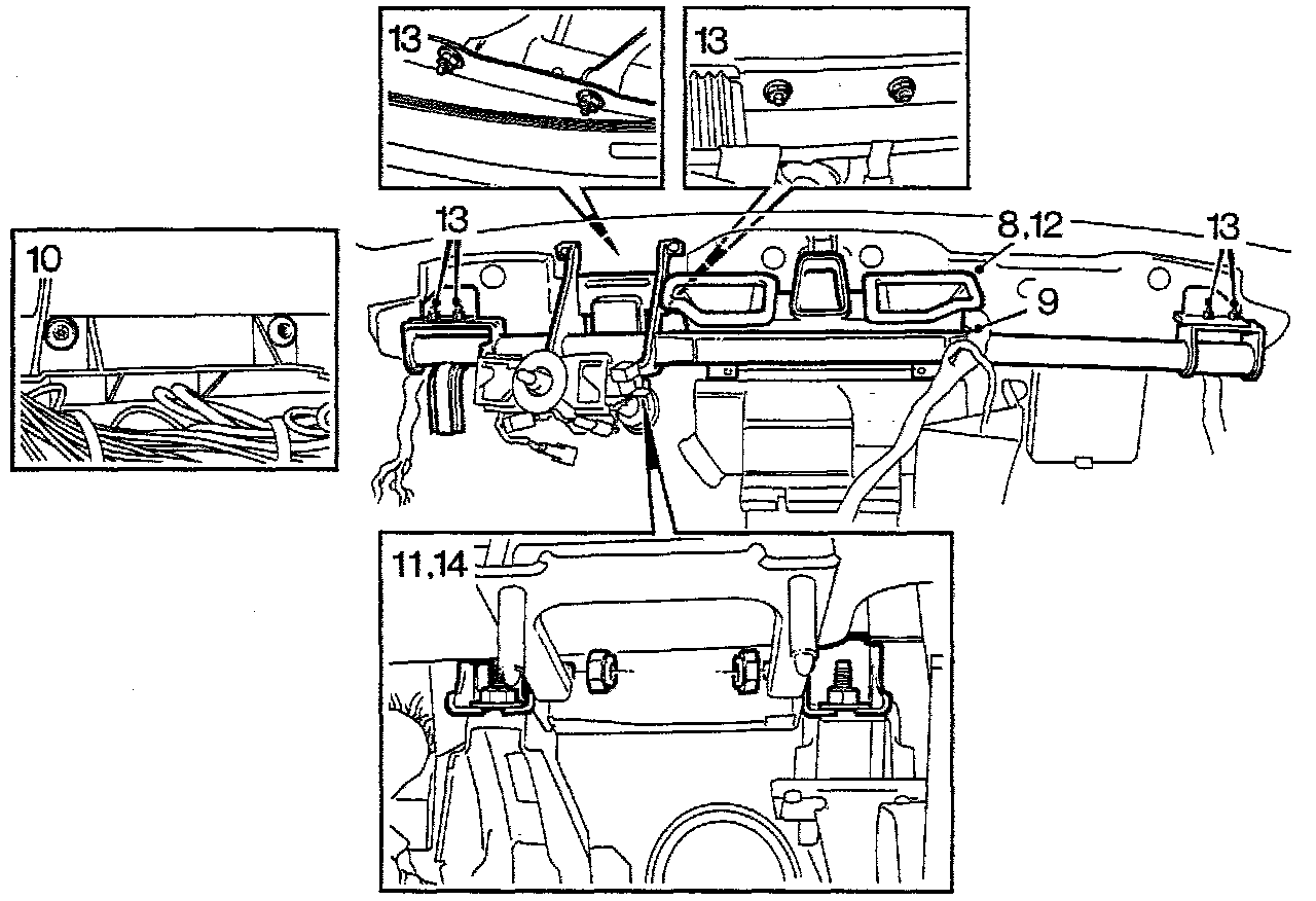 11. Refit the dashboard cross-member together with the angular supports.