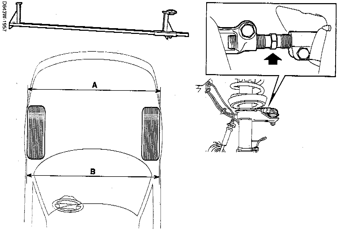 3. If adjustment is necessary, do this by adjusting the length of the track rod on both sides of the car.