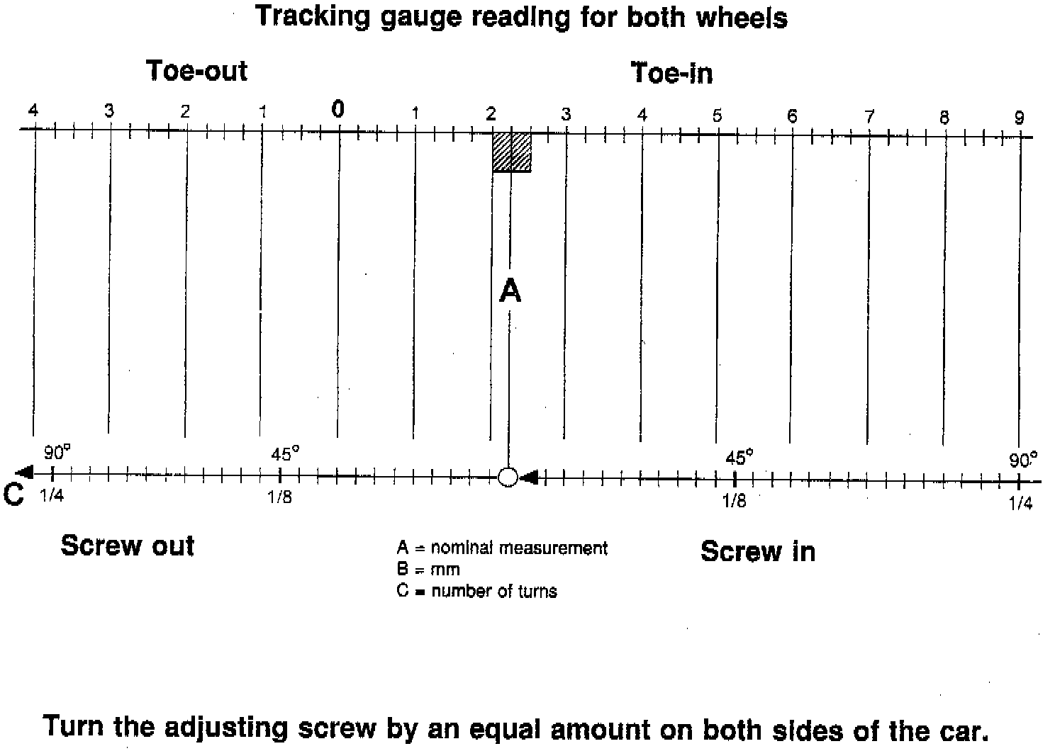 b. Assume the tracking gauge gives a reading of 0.5 toe-out.