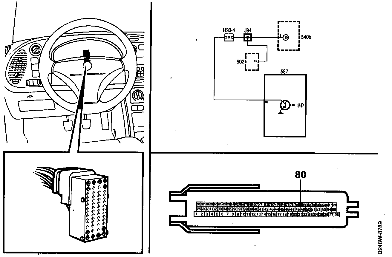 - Check the continuity of the wiring between pin 80 of the Motronic control module and pin 6 of the main instrument display panel.