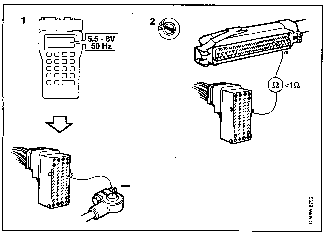 - Take a voltage/frequency reading across pin 6 and battery negative (B-).