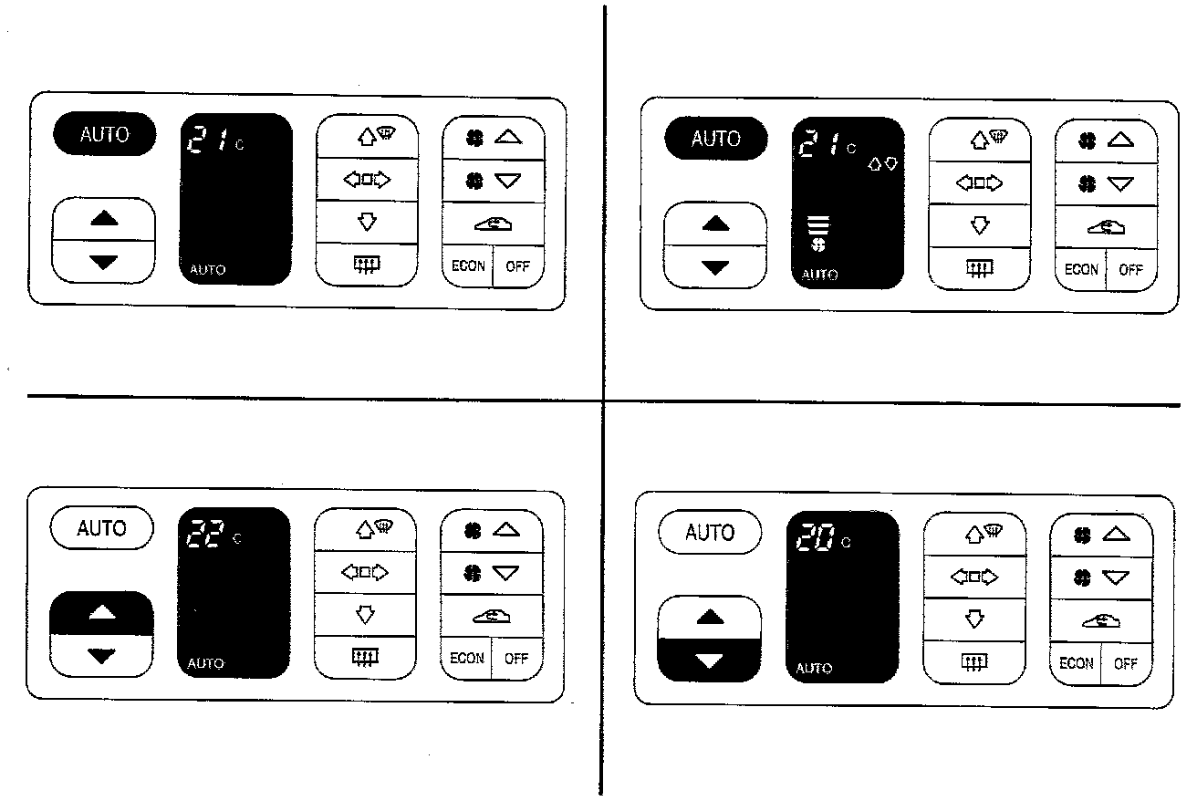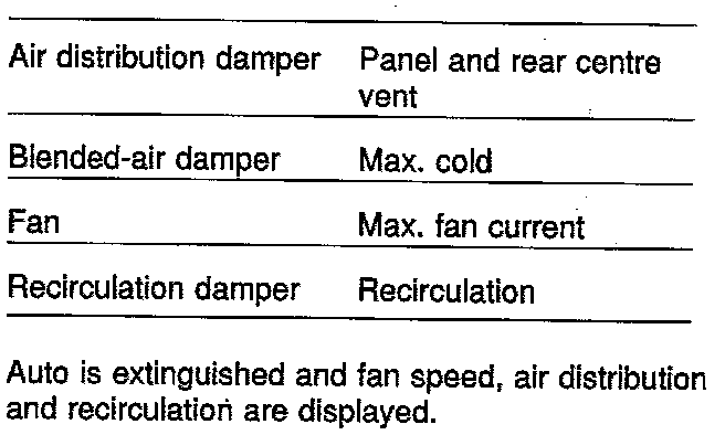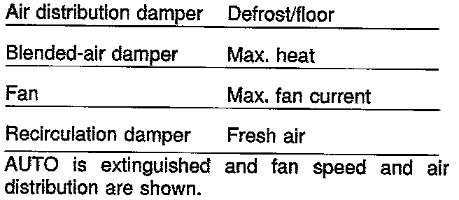 A/C and recirculation are turned OFF. In other respects control takes place as in the AUTO mode. ECON is shown on the display.